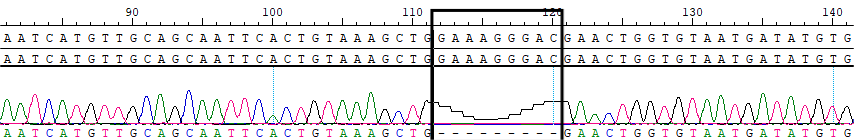 AA Change | p.K128_R130delAAGGGACGA |