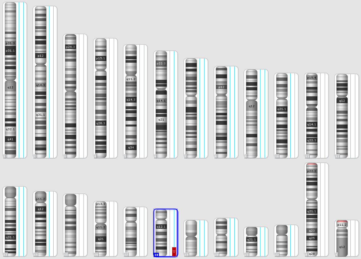 Karyotype | 46,XX,del(18)(q22) | ||||||||||||||||||||||||||||||||||||||||||||||||