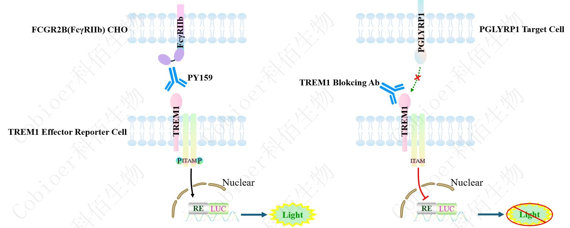 TREM1 Effector Reporter 報告基因藥靶模型很好的模擬了體內 TREM1 的信號轉導過程, 原理見下圖 所示。![]() Figure 1. TREM1 Effector Reporter 細胞模型原理圖 |