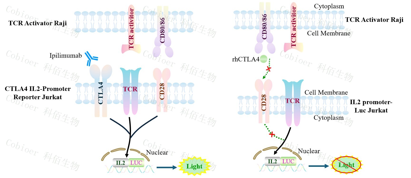 TCR Activator Raji 報告基因藥靶模型很好的模擬了體內(nèi) CD28&CD80/CD86 或者CTLA4 的信號轉導過程,原理見下圖所示。![]() Figure 1. TCR Activator Raji 細胞模型原理圖 |