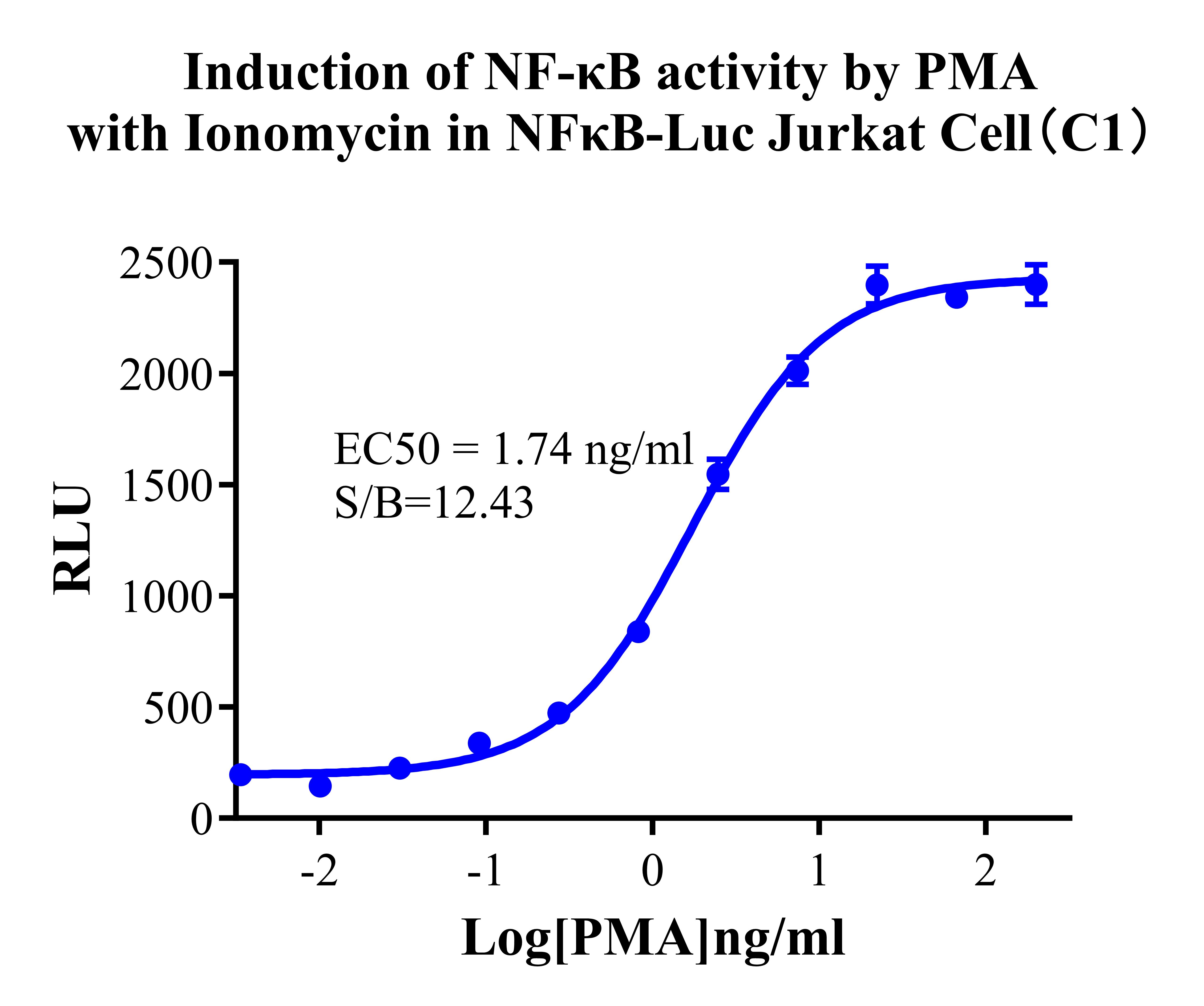 Figure 2. Detect Luciferase assay by Ultra Luciferase Detection Kit CBPH0001(we strongly suggest to purchase from Cobioer).Induction of NF-κB activity by PMA with Ionomycin in NFκB-Luc Jurkat(C1). |
