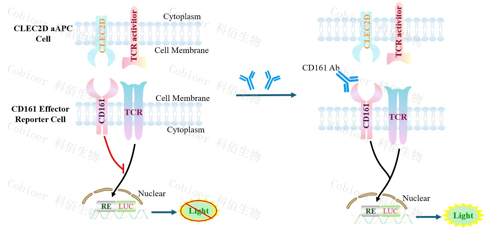 CD161 Effector Reporter Cell 報(bào)告基因藥靶模型很好的模擬了體內(nèi) CD161 的信號(hào)轉(zhuǎn)導(dǎo) 過(guò)程,原理見(jiàn)下圖所示。