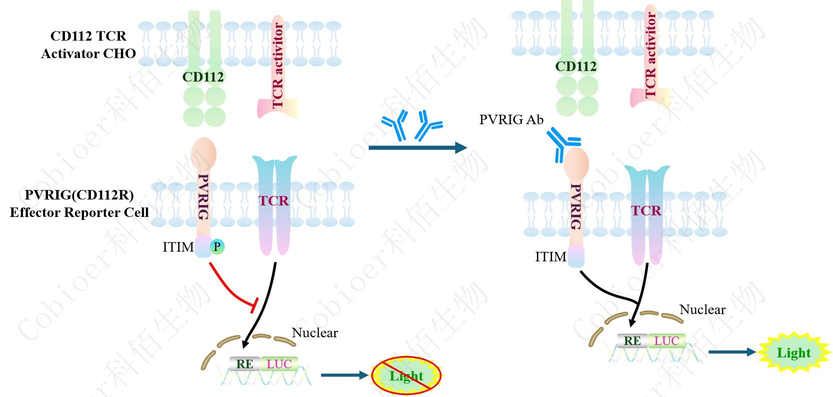 CD112 TCR Activator CHO 細(xì)胞作為 PVRIG(CD112R) Effector Reporter Cell 的靶細(xì)胞, 很好的模擬了體內(nèi) PVRIG(CD112R) 的信號(hào)轉(zhuǎn)導(dǎo)過程,原理見下圖所示。