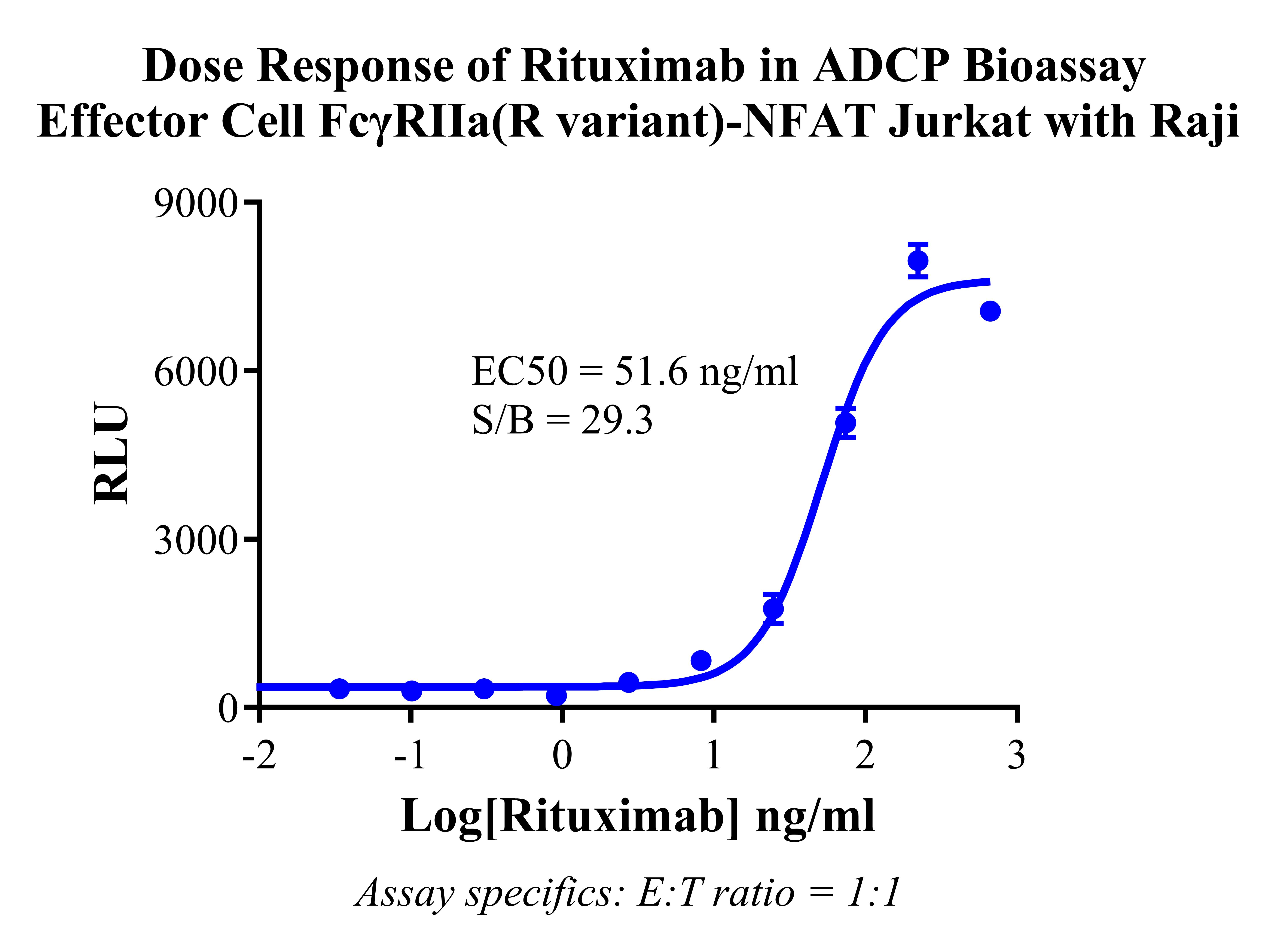 Figure 3Dose Response of Rituximab in ADCP Bioassay Effector Cell FcγRIIa(R variant)-NFAT Jurkat with Raji.