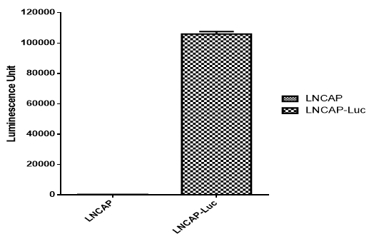 Figure. Stablity test results. LNCAP-Luc cells showed at least 32 passage stability with similar luminescence unit. |