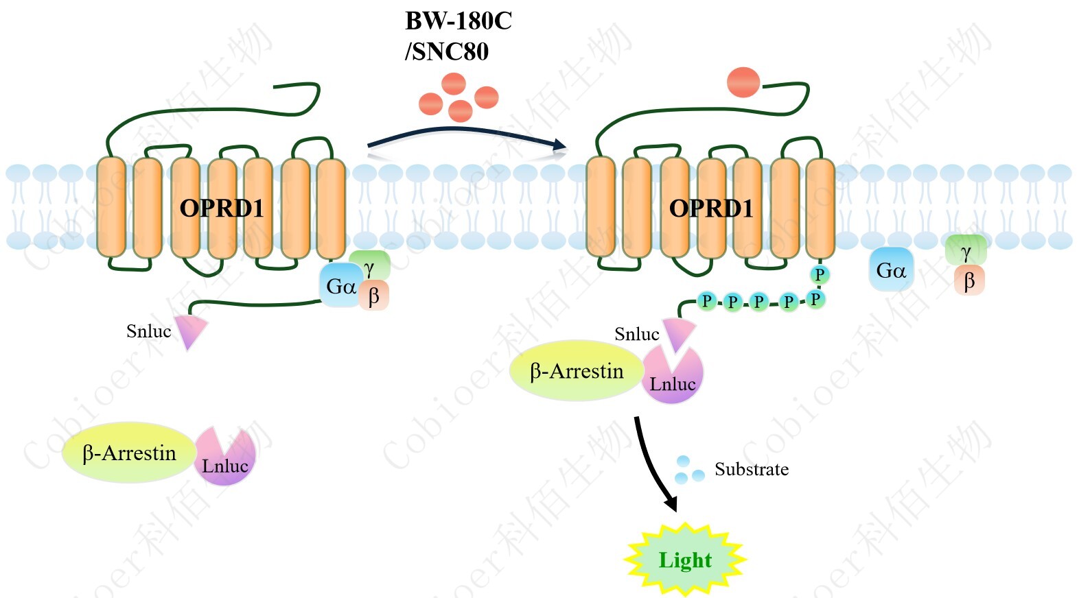 ![]() Figure 1. OPRD1 β-Arrestin CHO 細(xì)胞模型原理圖