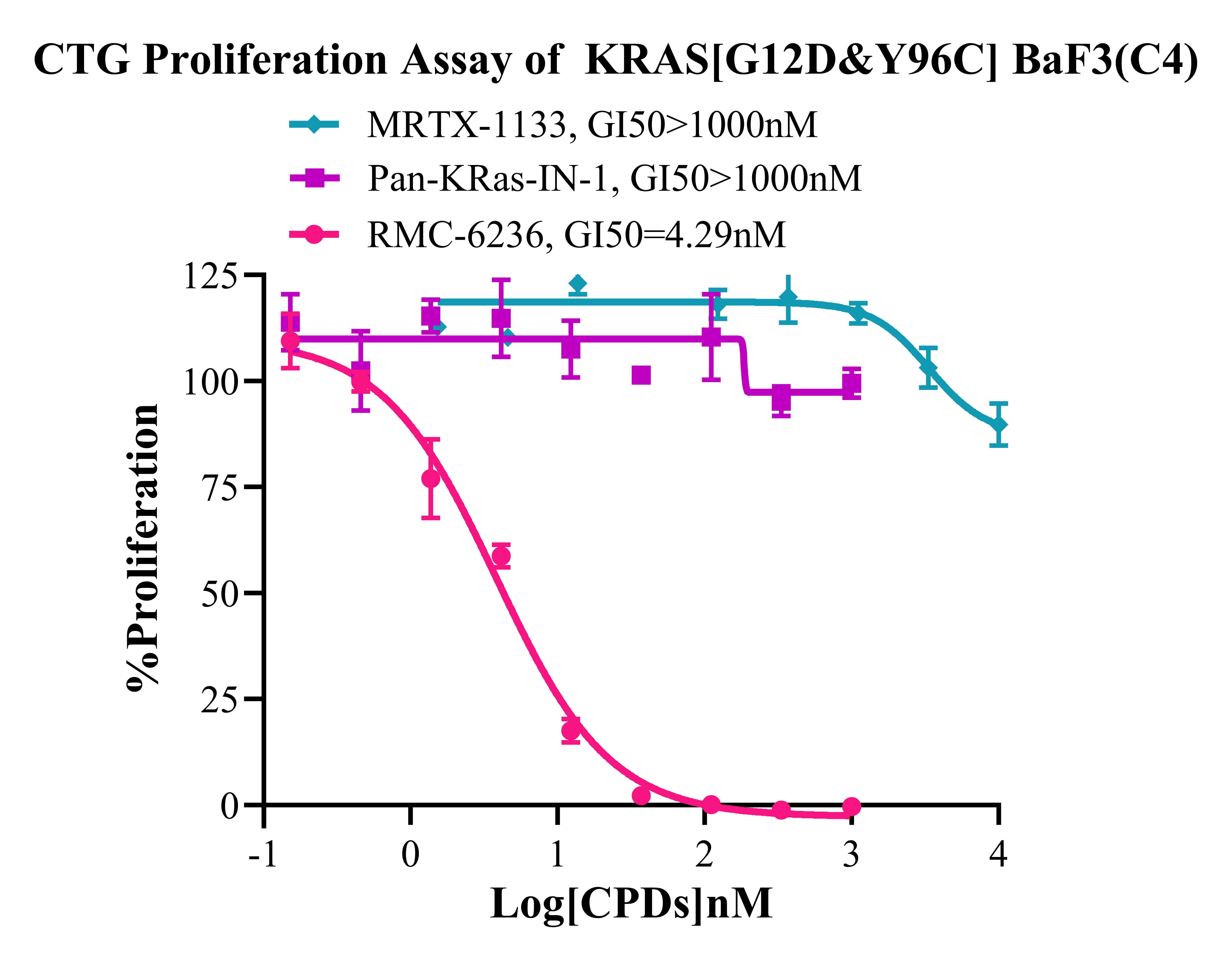3. Anti-proliferation assay Figure 4. CTG Proliferation Assay of KRAS [G12D&Y96C] BaF3(C4). |