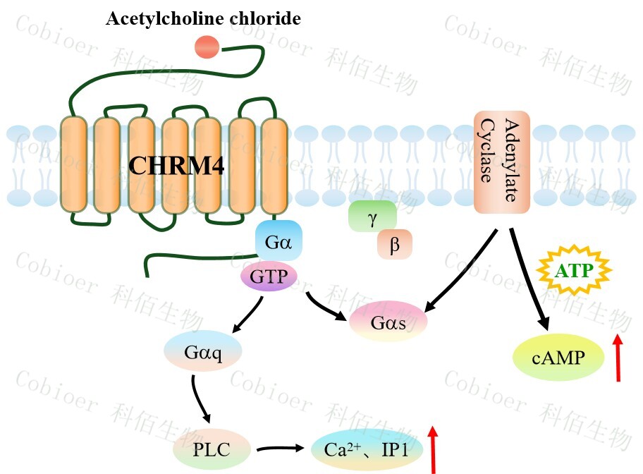 毒蕈堿乙酰膽堿受體(MAChRs,簡稱 M 受體)參與中樞神經(jīng)系統(tǒng)的運動控制、體溫 調(diào)節(jié)、心血管調(diào)節(jié)和記憶,介導(dǎo)周圍神經(jīng)系統(tǒng)的平滑肌收縮、腺體分泌和心率、調(diào)節(jié)心肌 收縮力。CHRM4 作為 Gi/o 偶聯(lián)型毒蕈堿受體,中樞神經(jīng)系統(tǒng)高表達,其內(nèi)源性配體乙酰 膽堿(ACh)激活后優(yōu)先通過 Gi/oα亞基抑制腺苷酸環(huán)化酶,同時釋放 Gβγ二聚體。 | |