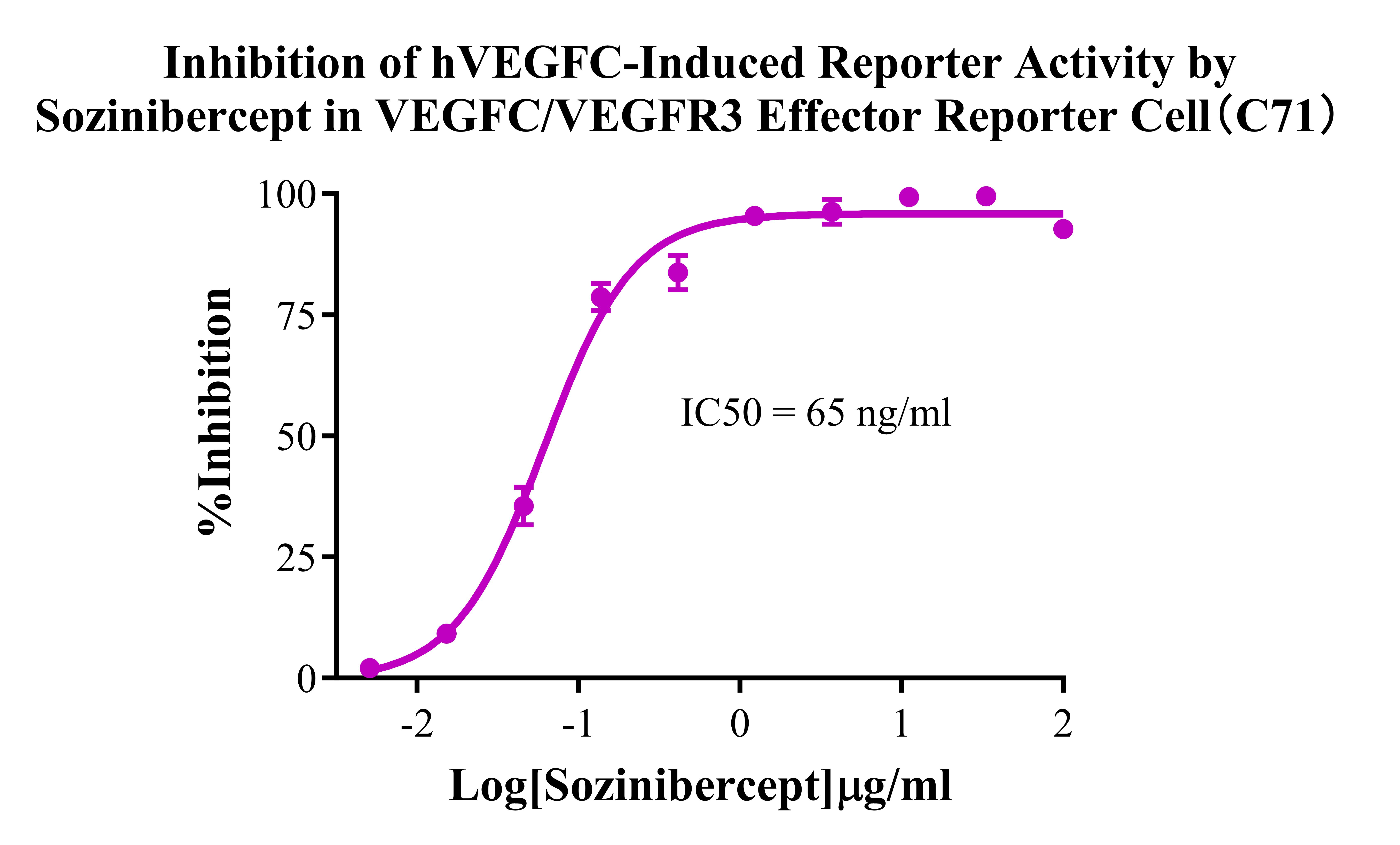 ![]() Figure 5. Inhibition of hVEGFC-Induced Reporter Activity by VEGFR3 Inhibitor in VEGFC/EGFR3 Effector Reporter Cell (C71). |