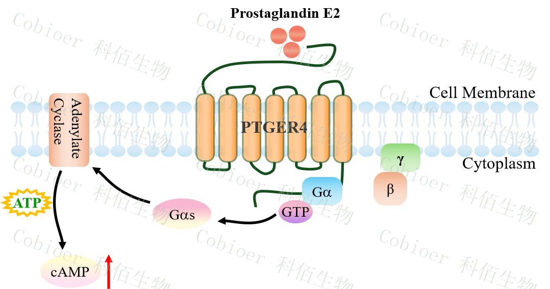 PTGER4 HEK293 細(xì)胞藥靶模型很好的模擬了體內(nèi) PTGER4 的信號(hào)轉(zhuǎn)導(dǎo)過(guò)程,原理見(jiàn)下圖所示。