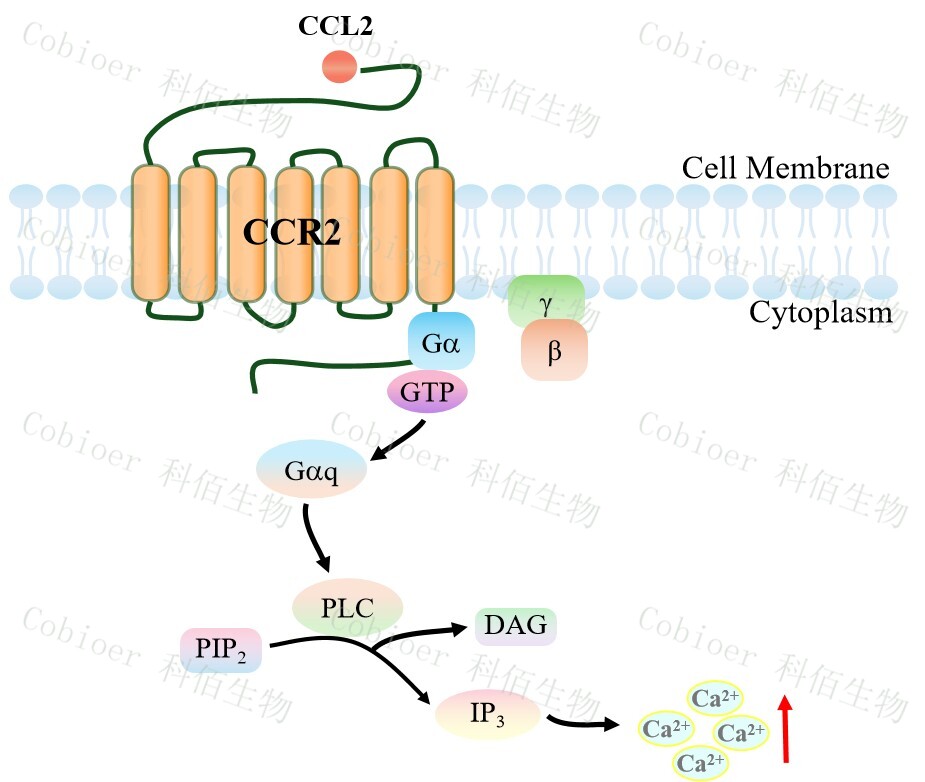 CCR2(C-C 趨化因子受體 2 型)是表達(dá)于單核細(xì)胞、巨噬細(xì)胞等免疫細(xì)胞表面的 G 蛋 白偶聯(lián)受體(GPCR),具有七次跨膜螺旋結(jié)構(gòu),胞外 N 端含有糖基化位點(diǎn),胞內(nèi) C 端則 負(fù)責(zé)信號轉(zhuǎn)導(dǎo)的蛋白相互作用域。人 CCR2 蛋白由 374 個氨基酸構(gòu)成,具有兩個主要剪接 變體:CCR2A 和 CCR2B,其中 CCR2B 是最常見的功能型形式。