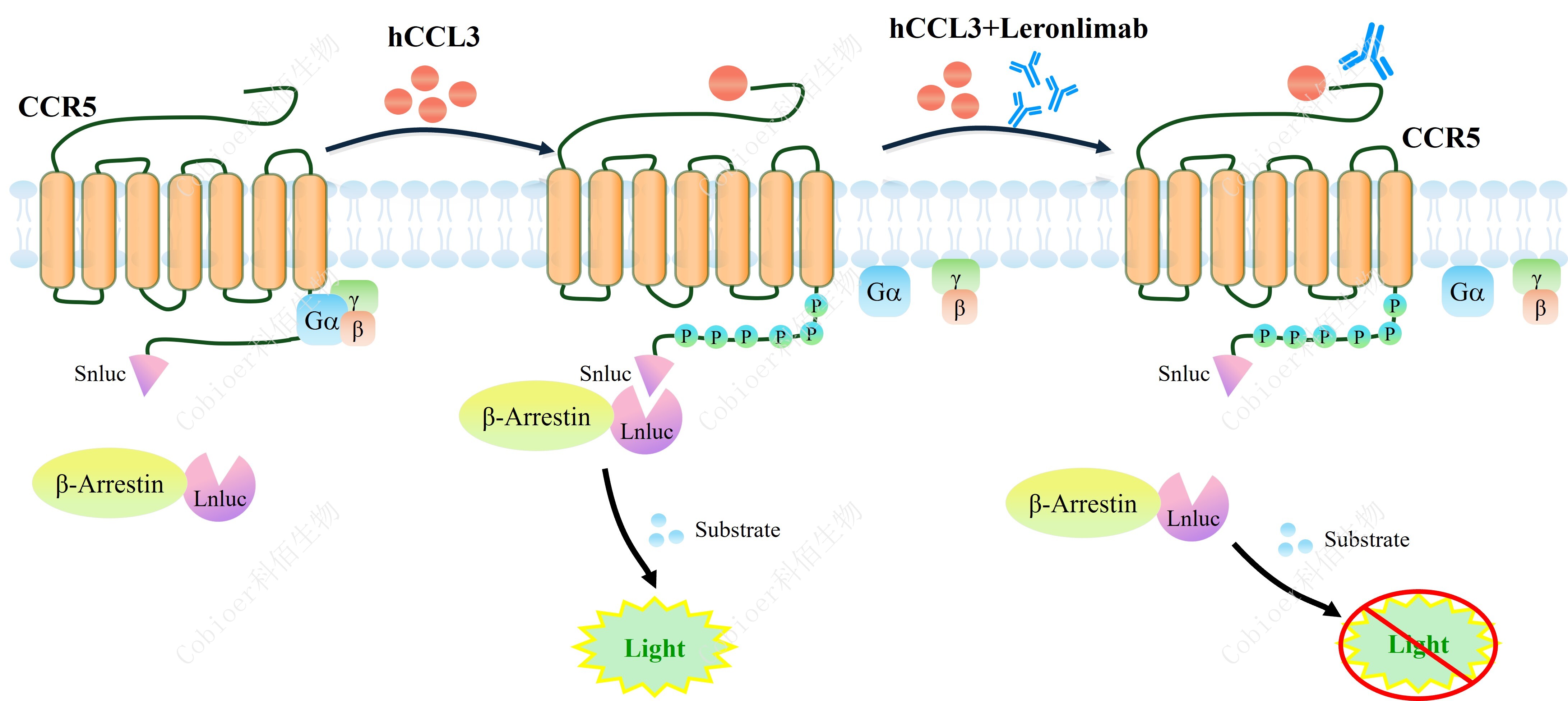 報告基因細胞模型可以很好的反映分子作用機制,同時具備更小的變異性和更好的可 操作性,已被中檢院及藥企廣泛應用于抗體藥物生物活性的檢定,對于藥物研發(fā)、質(zhì)量控 制、批次放行都有重要意義。 CCR5 β-Arrestin CHO 報告基因藥靶模型很好的模擬了體內(nèi) CCR5/β-Arrestin 的信號轉(zhuǎn)導過程,原理見下圖所示。![]() Figure 1. CCR5 β-Arrestin CHO 細胞模型原理圖