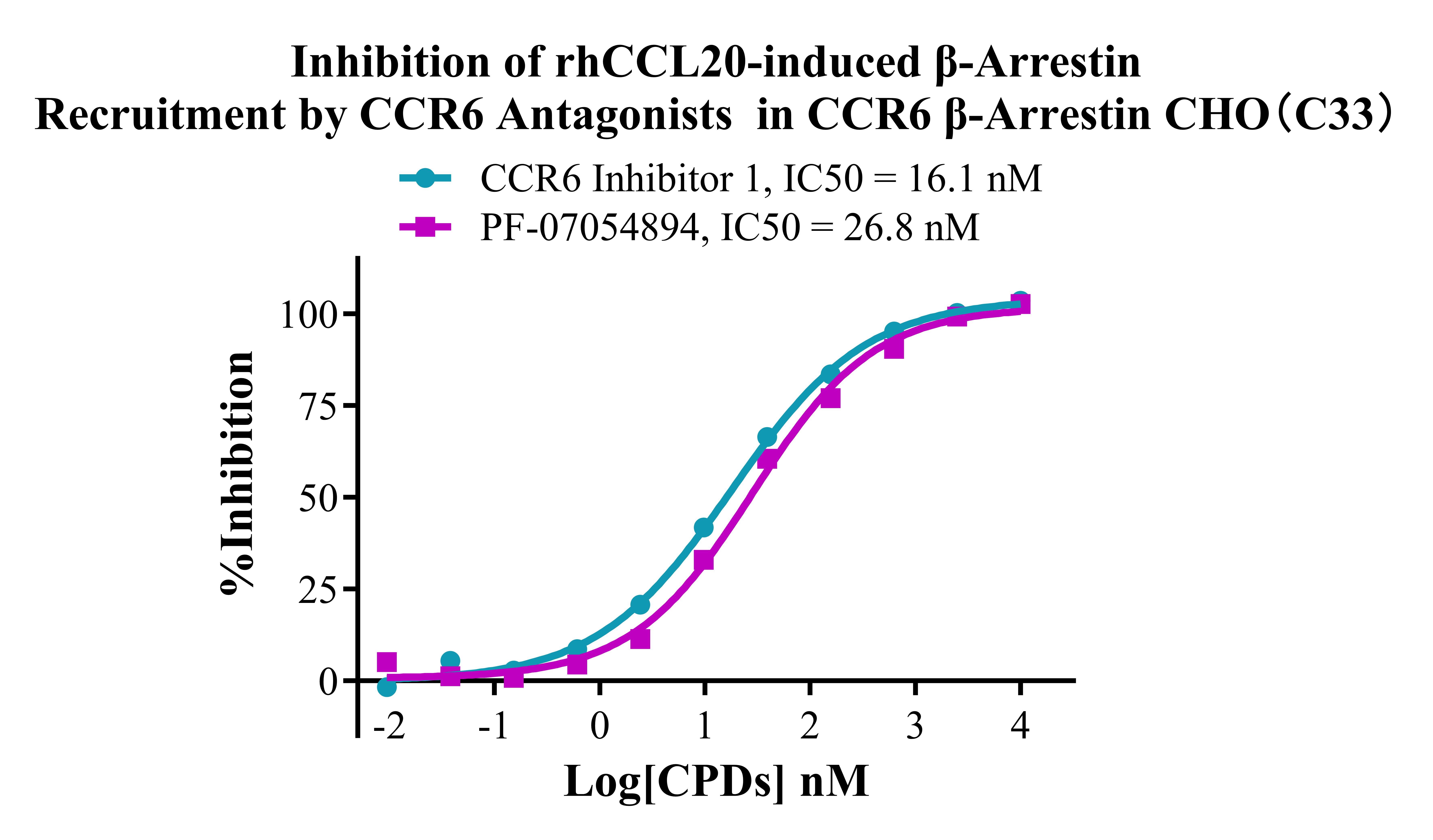 CCR6 β-Arrestin CHO 報(bào)告基因藥靶模型很好的模擬了體內(nèi) CCR6/β-Arrestin 的信號(hào)轉(zhuǎn) 導(dǎo)過程,原理見下圖所示。![]() Figure 1. CCR6 β-Arrestin CHO 細(xì)胞模型原理圖 |