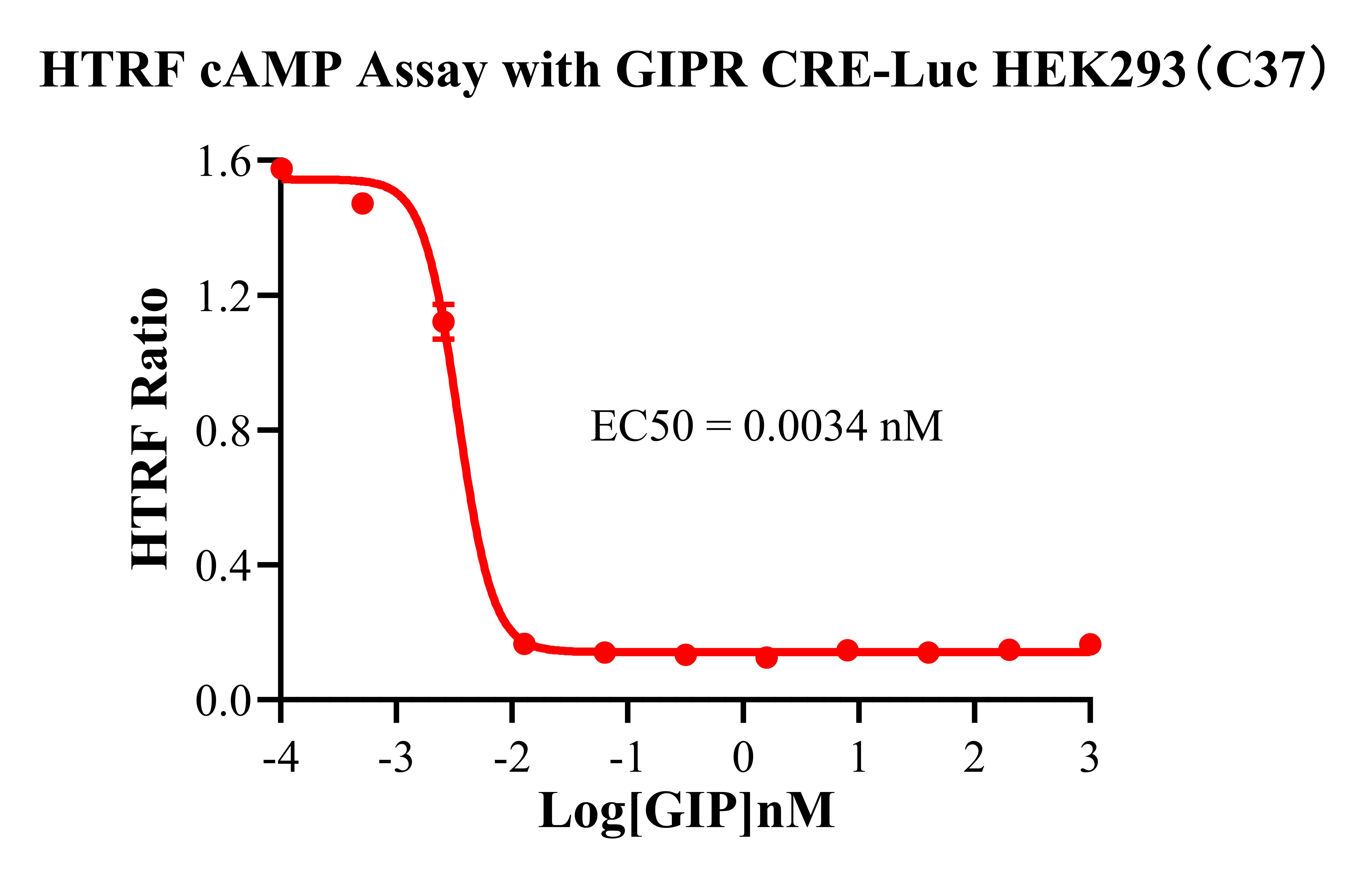 Figure 2. Recombinant GIPR/CRE-Luc/HEK293 stably expressing human GIPR. Figure 3. Dose response of GIP in GIPR CRE-Luc HEK293(C37). |