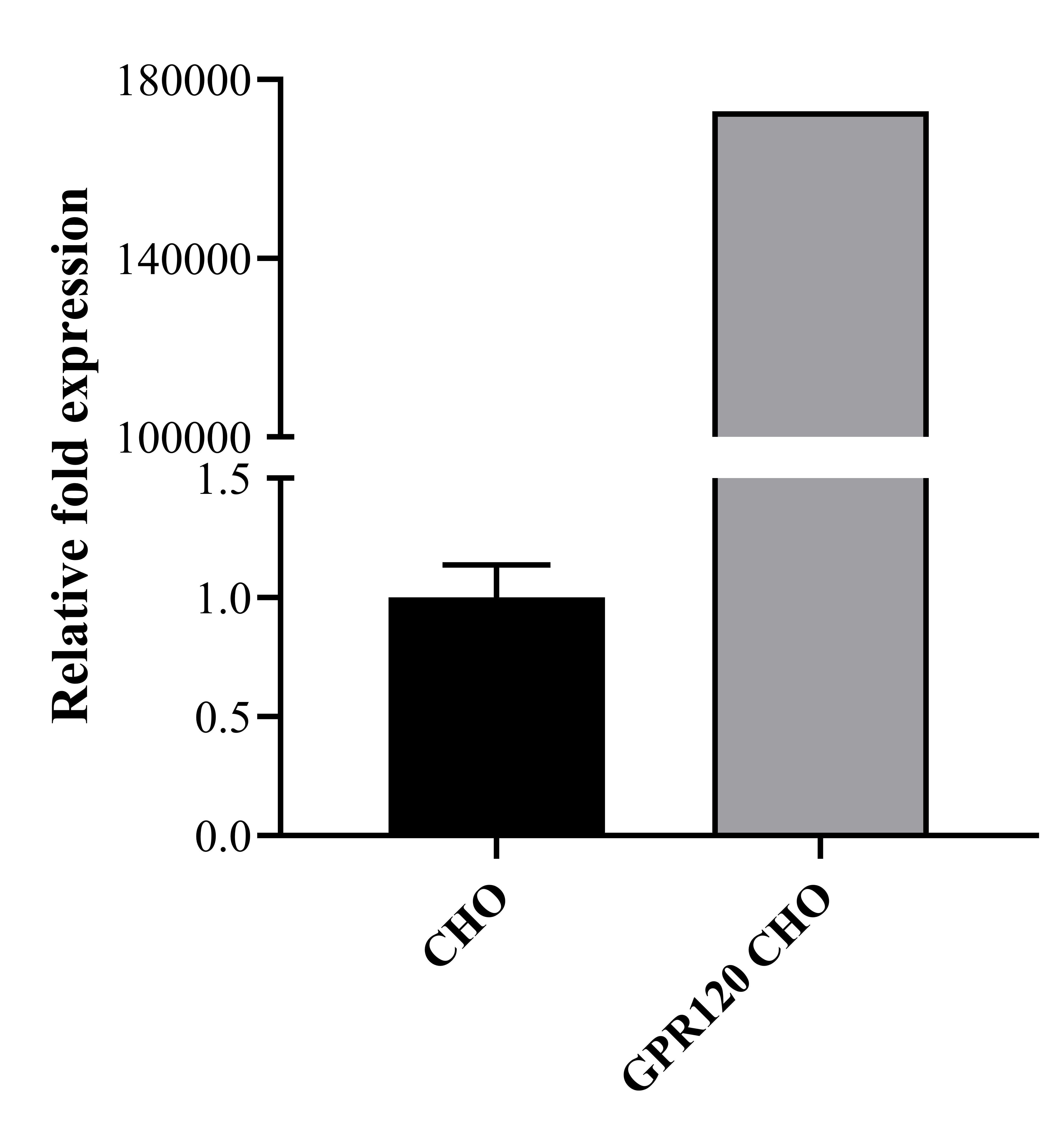 GPR120 與配體結合,導致 Gαq 亞基的激活,觸發(fā) PLC-γ,從而產生兩個第二信使: IP3 和 DAG,它們參與細胞內鈣動員。GPR120 CHO 細胞藥靶模型很好的模擬了體內 GPR120 的信號轉導過程,原理見下圖所示。![]() Figure 1. GPR120 CHO 細胞模型原理圖 |