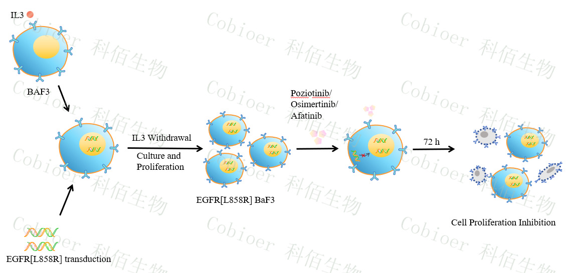 BaF3(小鼠原 B 細(xì)胞)的生長和增殖需要 IL-3 的維持。通過引入各種表達(dá)激酶的基因, 能作為 BaF3 的驅(qū)動(dòng)基因,讓 BaF3 不再依賴 IL-3 而增殖,進(jìn)而激酶基因成為 BaF3 增殖依 賴的驅(qū)動(dòng)基因,用于評(píng)估小分子藥物對(duì)激酶的靶向抑制作用,原理及流程見下圖所示。