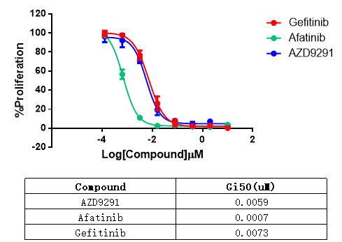 Figure 4. Anti-proliferation assay of three reference compounds on the EGFR Del19/BaF3 Stable Cell Line.