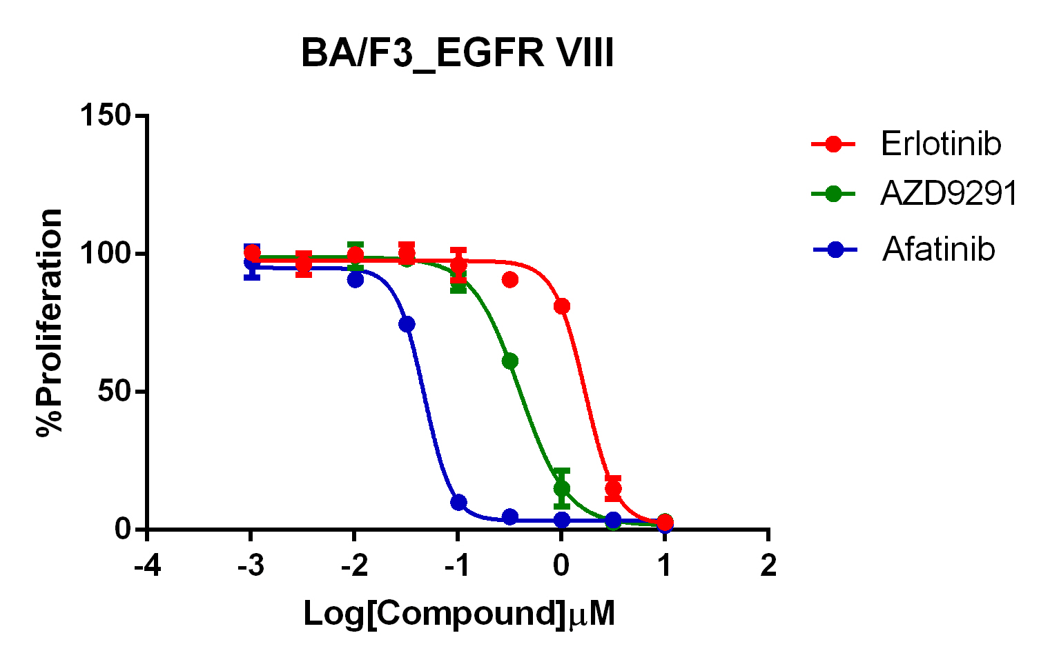1. Anti-proliferation assay Figure 2. Anti-proliferation assay of three reference compounds on the EGFR VIII/BaF3 Stable Cell Line . |