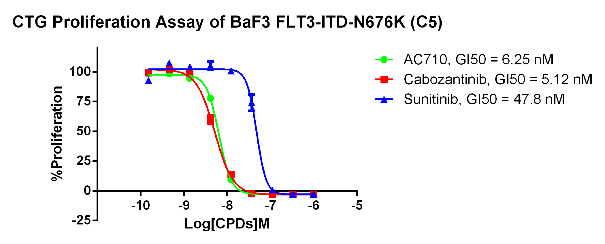 Figure 2. Anti-proliferation assay of two reference compounds on the FLT3-ITD [N676K]/BaF3 Stable Cell Line.