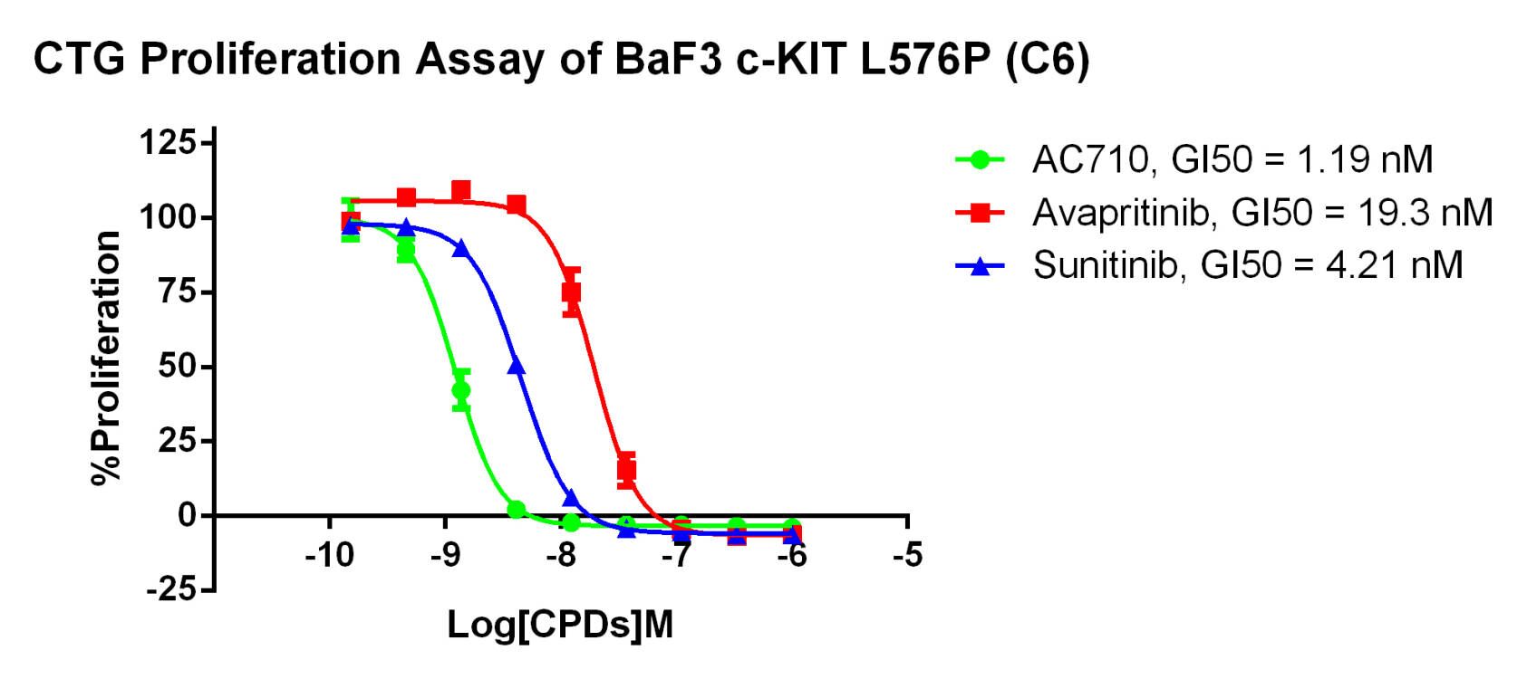 Figure 3. CTG Proliferation Assay of BaF3 c-KIT L576P (C6). |