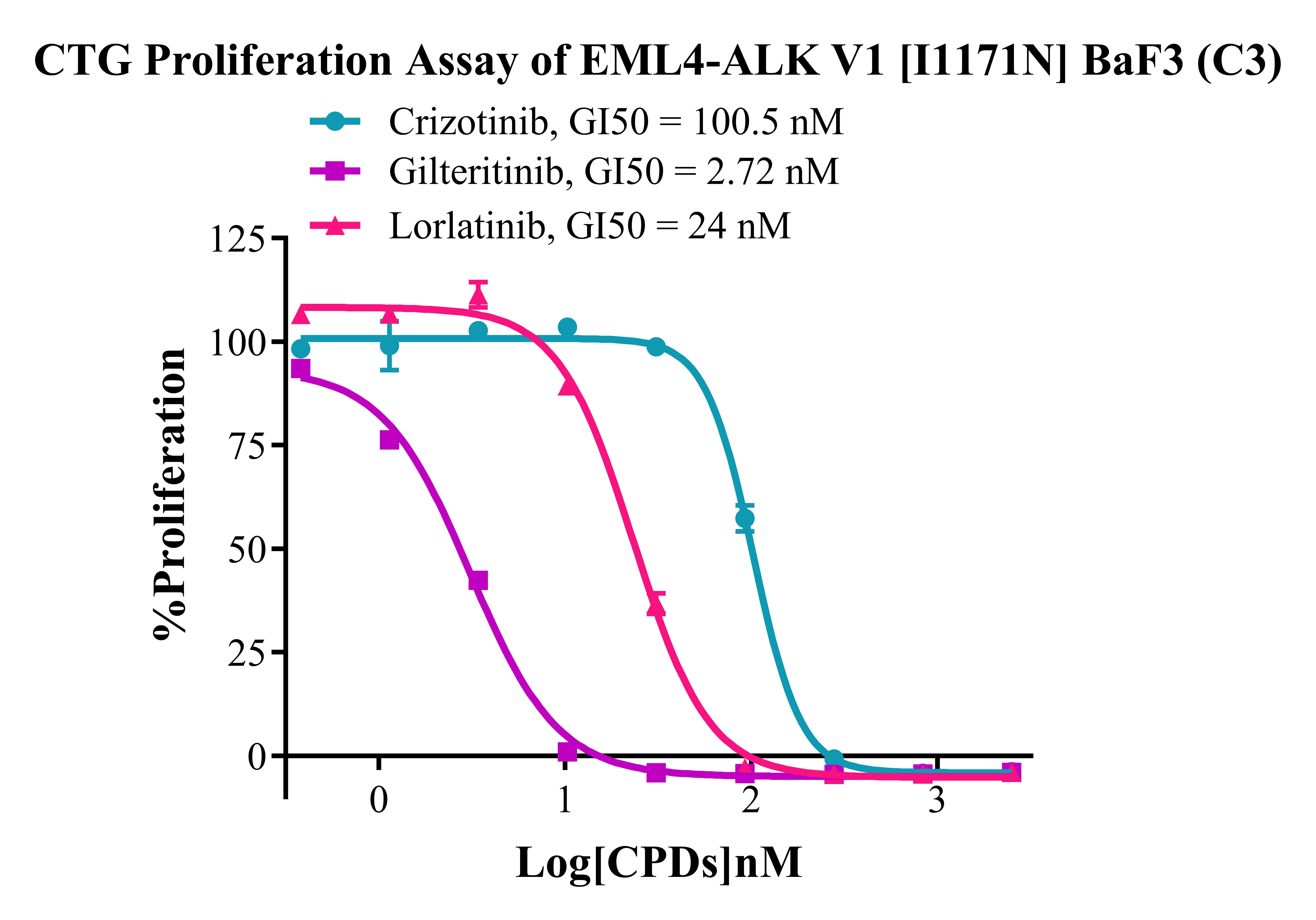 3. Anti-proliferation assay Figure 5. CTG Proliferation Assay of EML4-ALK V1 I1171N BaF3(C3). |