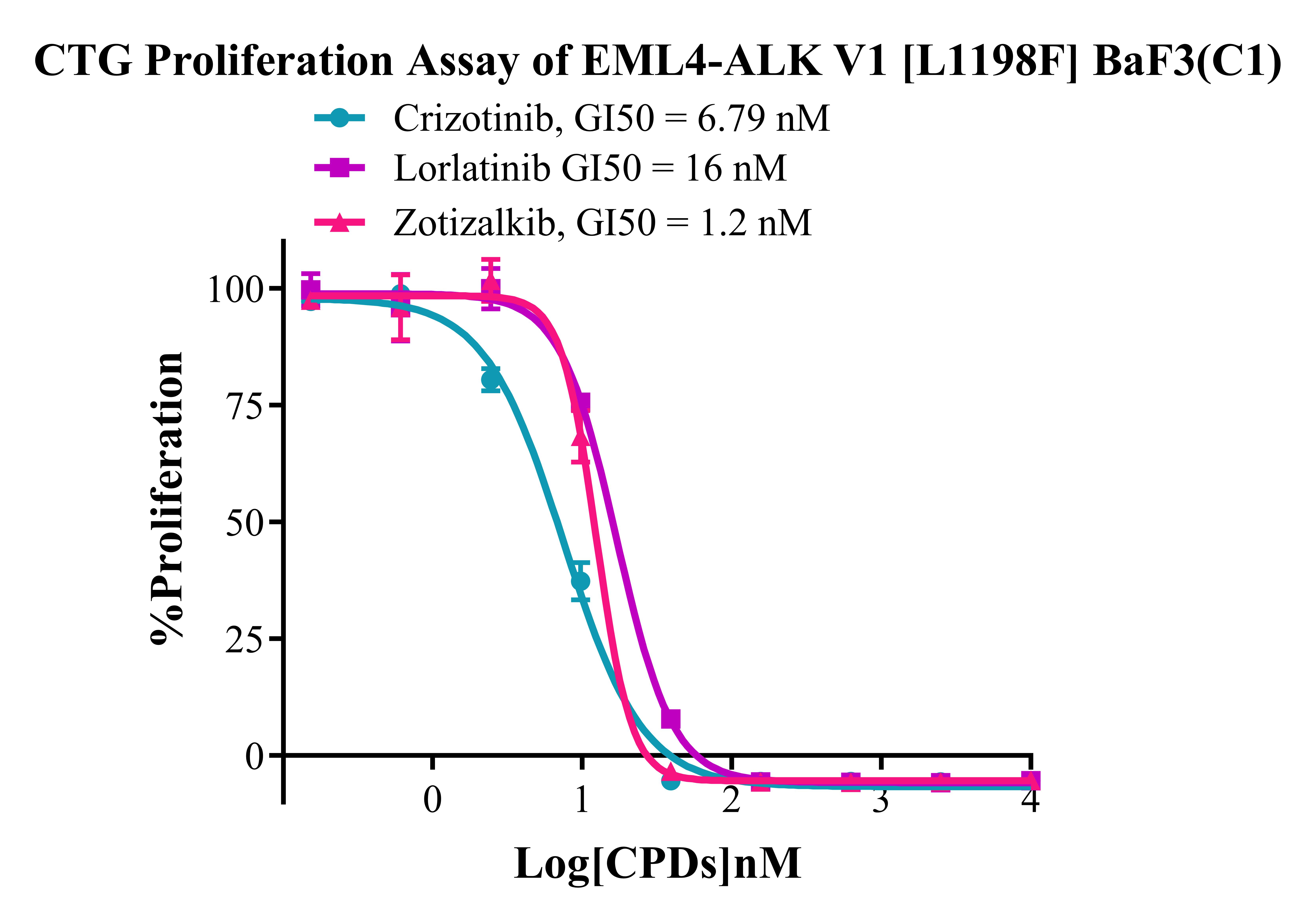2. Anti-proliferation assay Figure 3. CTG Proliferation Assay of EML4-ALK V1 [L 1198F] BaF3(C1). |