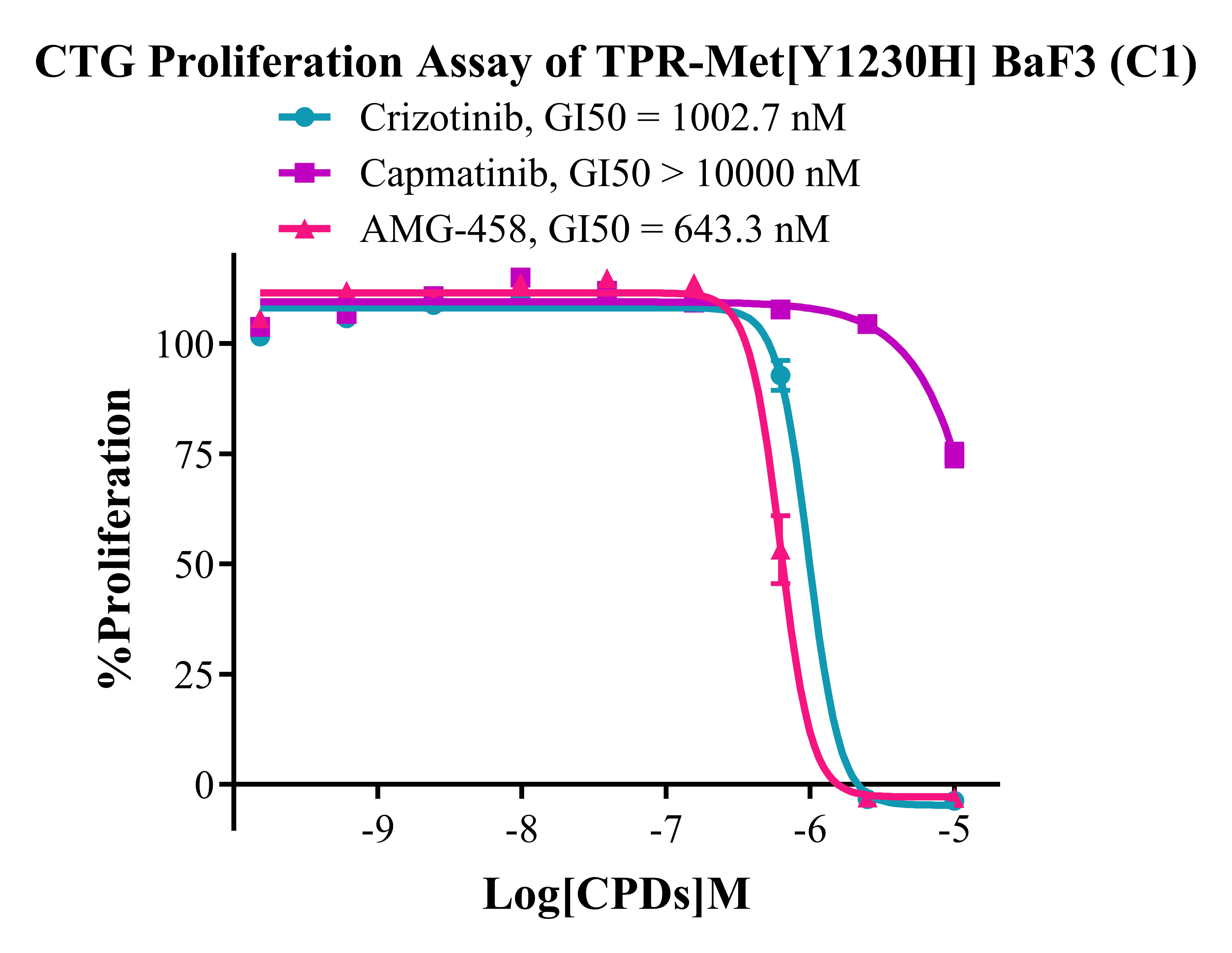 3. Anti-proliferation assay Figure 5. CTG Proliferation Assay of TPR-Met [Y1230H] BaF3 (C1). |
