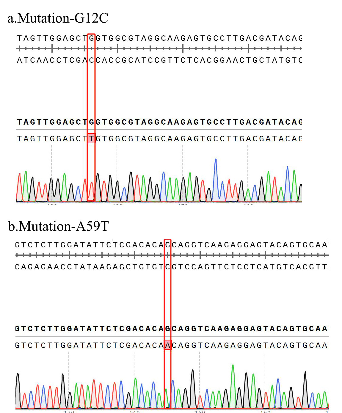 1. Sanger of KRAS[G12C&A59T] BaF3 Figure 2. Sanger of KRAS[G12C&A59T] BaF3 |