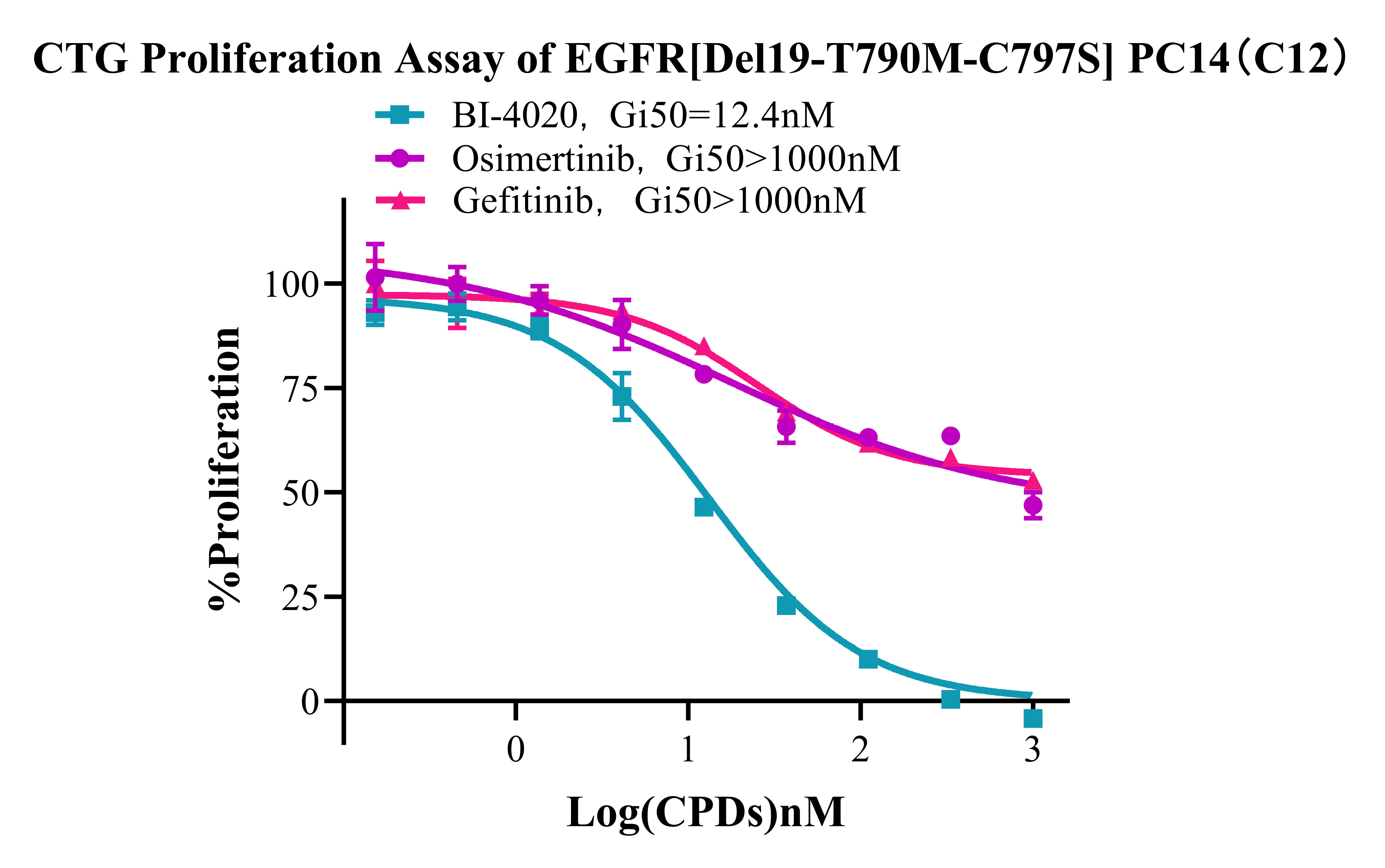 1. Anti-proliferation assay Figure 2. CTG Proliferation Assay Of EGFR Del19/T790M/C797S-PC14 Cells (C12). |
