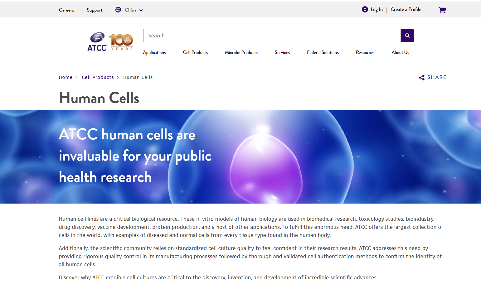 ATCC (American Type Culture Collection) 非營(yíng)利性的全球生物資源中心和標(biāo)準(zhǔn)組織,也是認(rèn)證細(xì)胞系和微生物的領(lǐng)先開發(fā)商和供應(yīng)商,擁有世界上最大、最廣泛的人類和動(dòng)物研究細(xì)胞系產(chǎn)品目錄,主要提供各種細(xì)胞系、微生物株、原代細(xì)胞、基因組和其他生物材料。它包含了數(shù)千種細(xì)胞系,包括人類、動(dòng)物和昆蟲的細(xì)胞系。常見的類型包括癌癥細(xì)胞系、免疫細(xì)胞、干細(xì)胞、以及轉(zhuǎn)基因細(xì)胞系。且細(xì)胞系數(shù)據(jù)中包含了詳細(xì)的細(xì)胞表征信息,如形態(tài)學(xué)、分子標(biāo)記、基因表達(dá)譜、增殖能力、傳代歷史等。它所提供的細(xì)胞形態(tài)圖是國(guó)際公認(rèn)的細(xì)胞標(biāo)準(zhǔn),大多數(shù)研究學(xué)者在購(gòu)買細(xì)胞后都會(huì)與ATCC數(shù)據(jù)庫(kù)中的細(xì)胞圖片作對(duì)照。