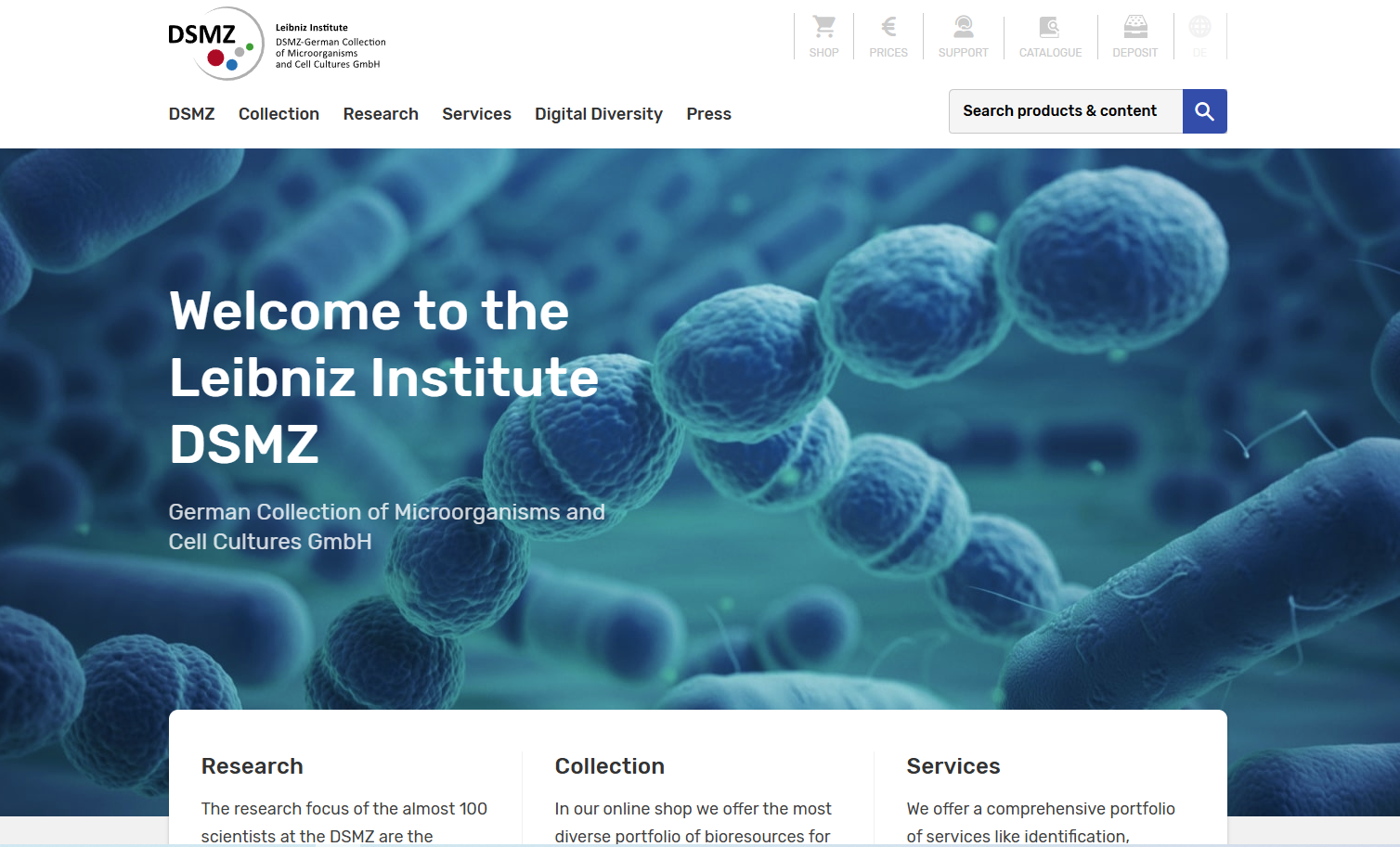 DSMZ成立于1969年,是德國(guó)的國(guó)家菌種保藏中心。該中心一直致力于細(xì)菌、真菌、質(zhì)粒、抗菌素、人體和動(dòng)物細(xì)胞、植物病毒等的分類、鑒定和保藏工作。作為世界上最大的保藏中心之一,DSMZ目前收藏超過70,000種產(chǎn)品,包括約31,000種不同的細(xì)菌和6,500種真菌菌株,830種人和動(dòng)物細(xì)胞系,1,500種植物病毒和抗血清,2,000種質(zhì)粒和噬菌體以及13,000種不同類型的細(xì)菌基因組DNA。