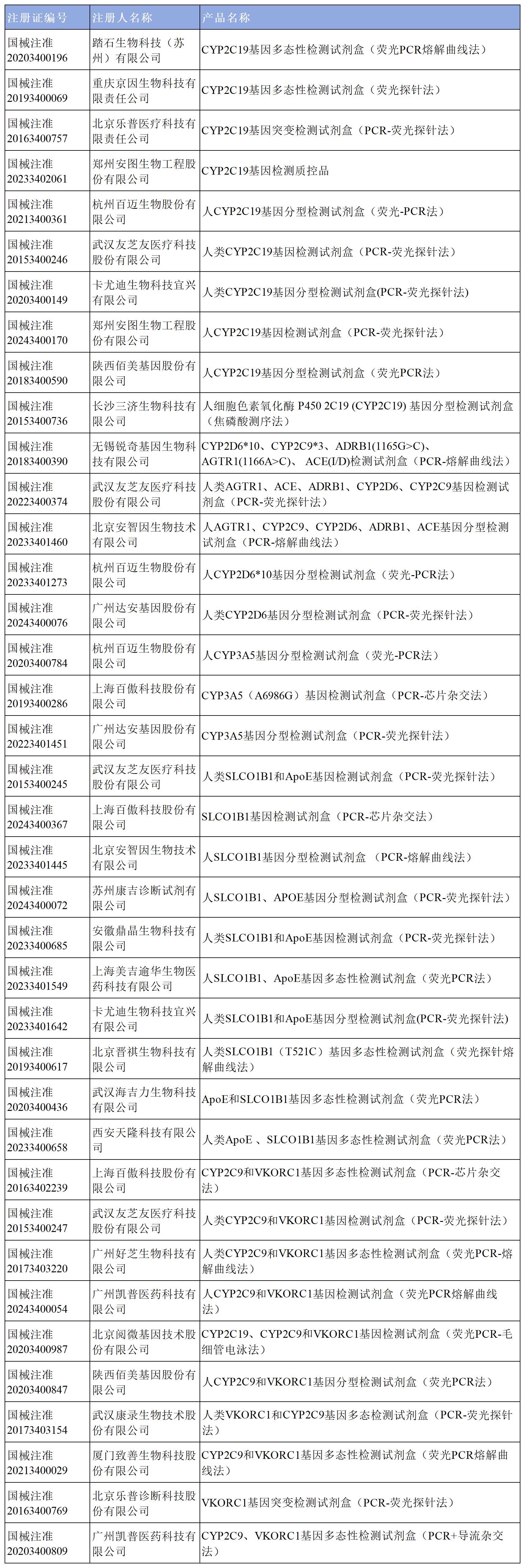 截至2023年9月,國內(nèi)批準個性化用藥相關基因檢測產(chǎn)品包括CYP2C19、CYP2C9、UGT1A1、CYP2D6、ALDH2、CYP3A5、SLCO1B1、VKORC1、APOE、ACE、TOP2A、PML-RARα等標志物。檢測常用的方法有實時熒光聚合酶鏈反應(polymerase chain reaction,PCR)、PCR?電泳分析、PCR-基因芯片法、PCR-Sanger測序、熔解曲線法等分子生物學方法。