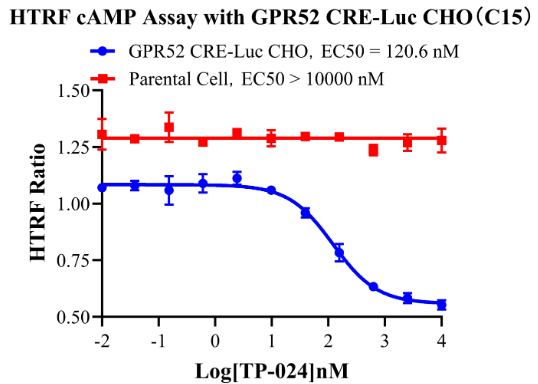 Figure 6. HTRF cAMP Assay with GPR52 CRE-Luc CHO(C15).