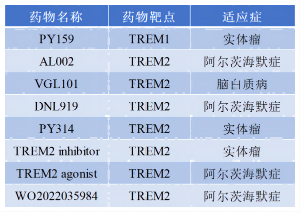 目前,針對TREM1和TREM2的研究主要集中在癌癥和阿爾茨海默癥領(lǐng)域。TREM1抑制劑可作為治療慢性炎癥和癌癥的潛在治療策略,TREM2則在阿爾茨海默癥的發(fā)展中起著關(guān)鍵作用,被確定為治療靶點。