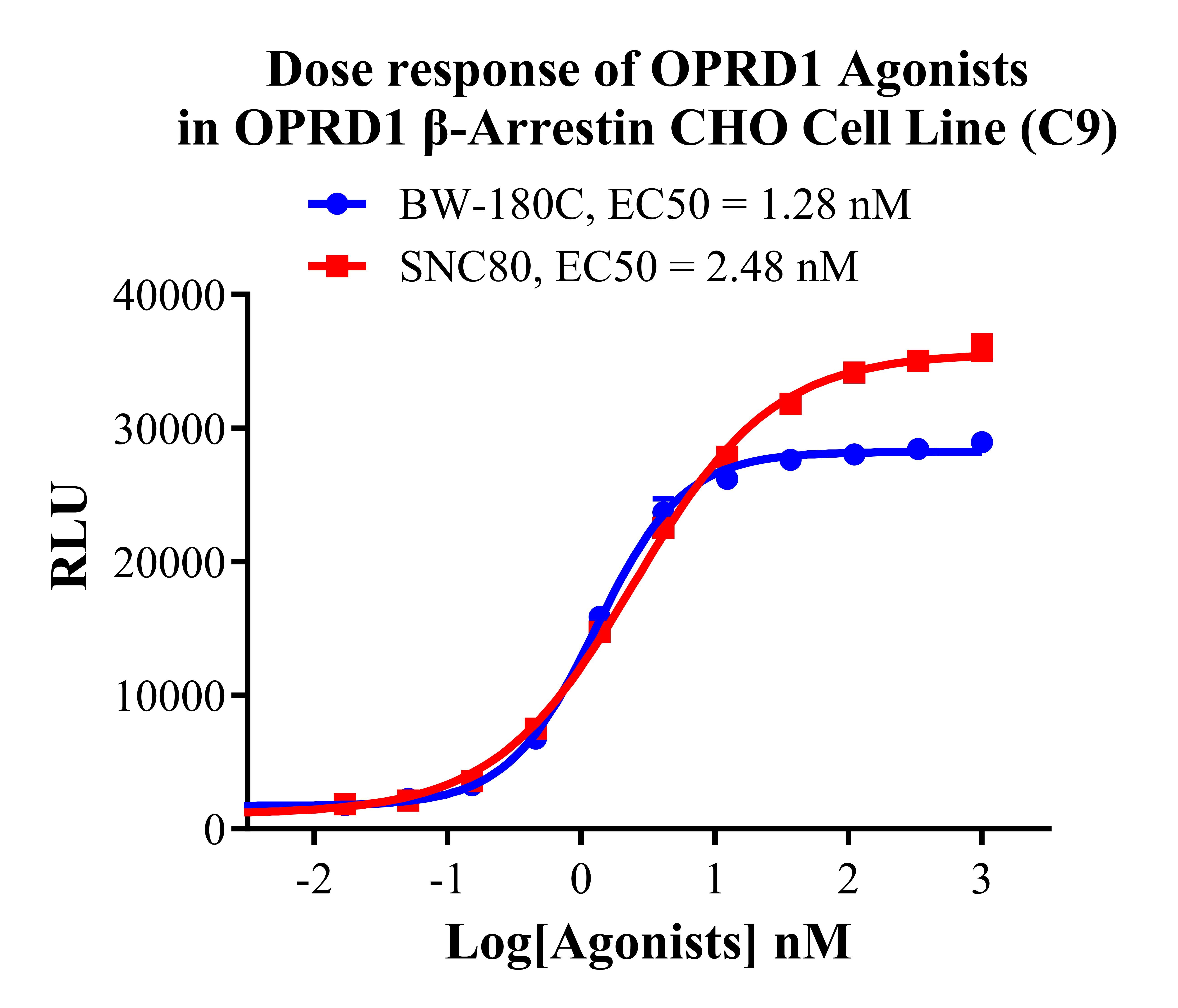 Figure 6. Dose response of OPRD1 Agonists in OPRD1 β-Arrestin CHO Cell Line (C9).
