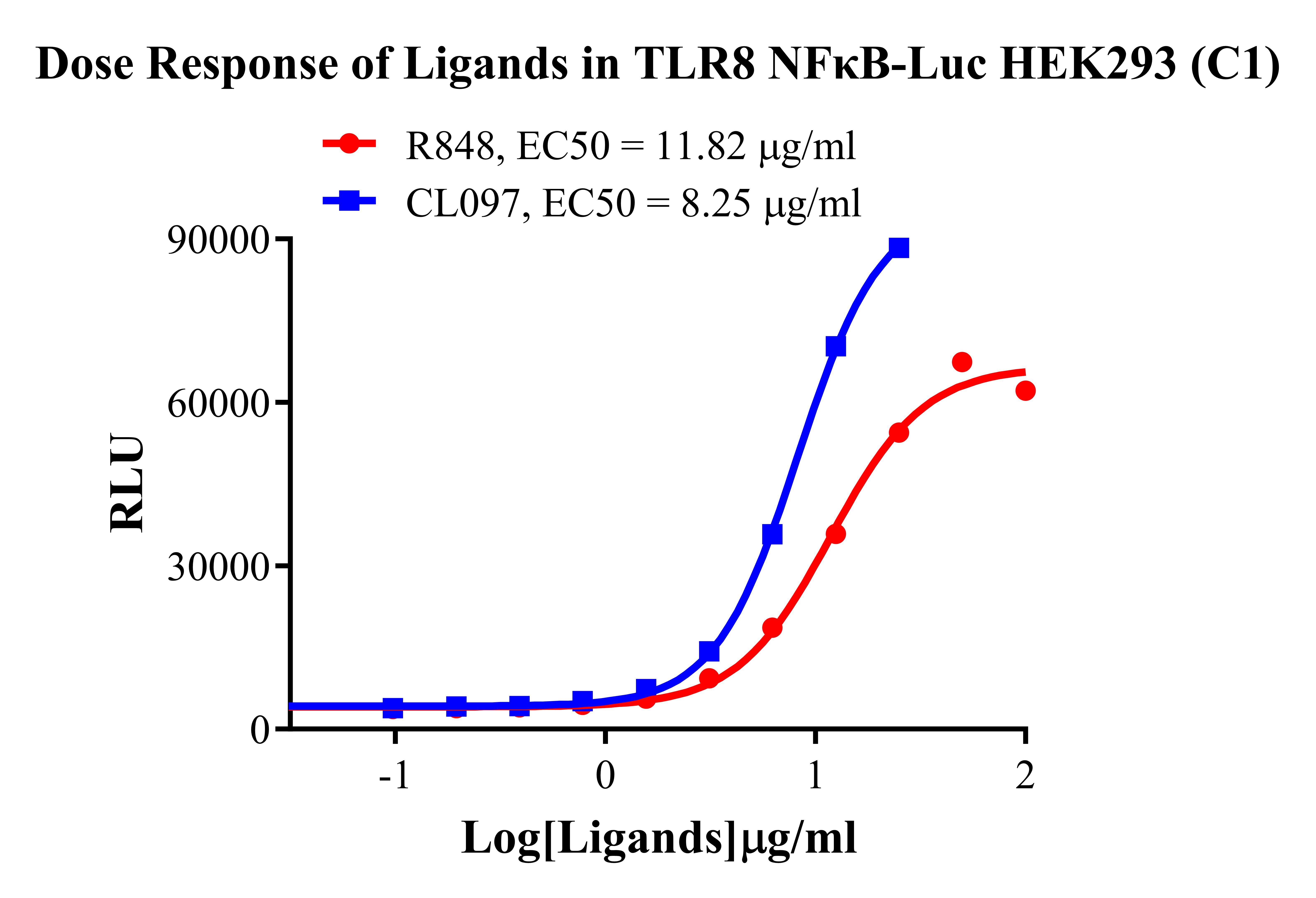 Figure 1. Detect Luciferase assay by Ultra Luciferase Detection Kit CBPH0001(we strongly suggest to purchase from Cobioer). Dose Response of Ligands in TLR8 NFκB-Luc(C1).