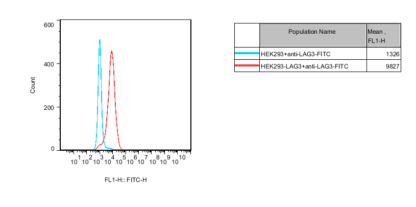 Figure 1. Recombinant HEK293 stably expressing human LAG3 (lymphocyte-activation gene 3, CD223, GenBank Accession # NM_002286). |