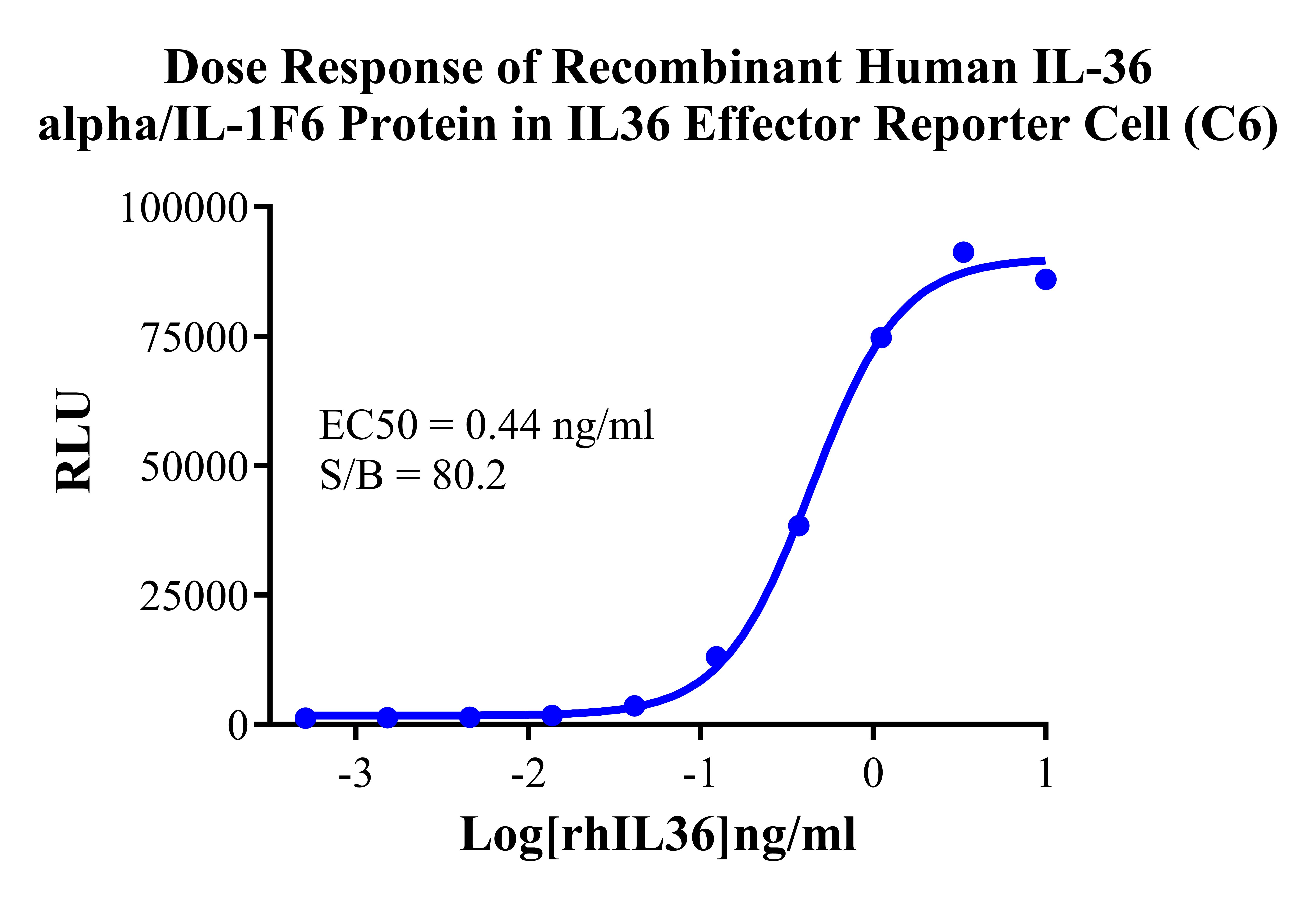 Figure 1. Dose Response of Recombinant Human IL-36 alpha/IL-1F6 Protein in IL-36 Effector Reporter Cell(C6).