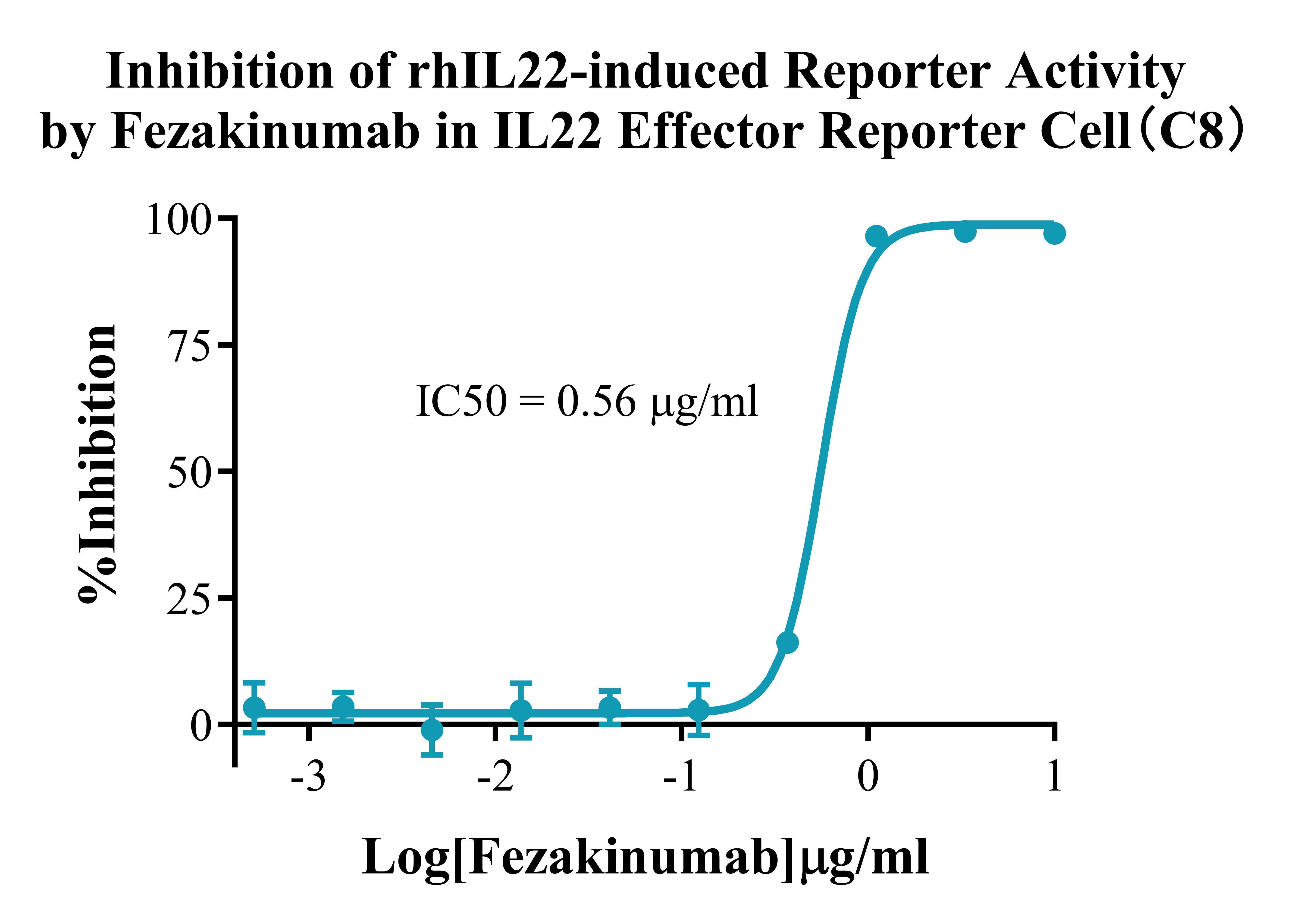 Figure 5.Inhibition of rhIL22-induced Reporter Activity By Fezakinumab in IL22 Effector Reporter Cells(C8). |