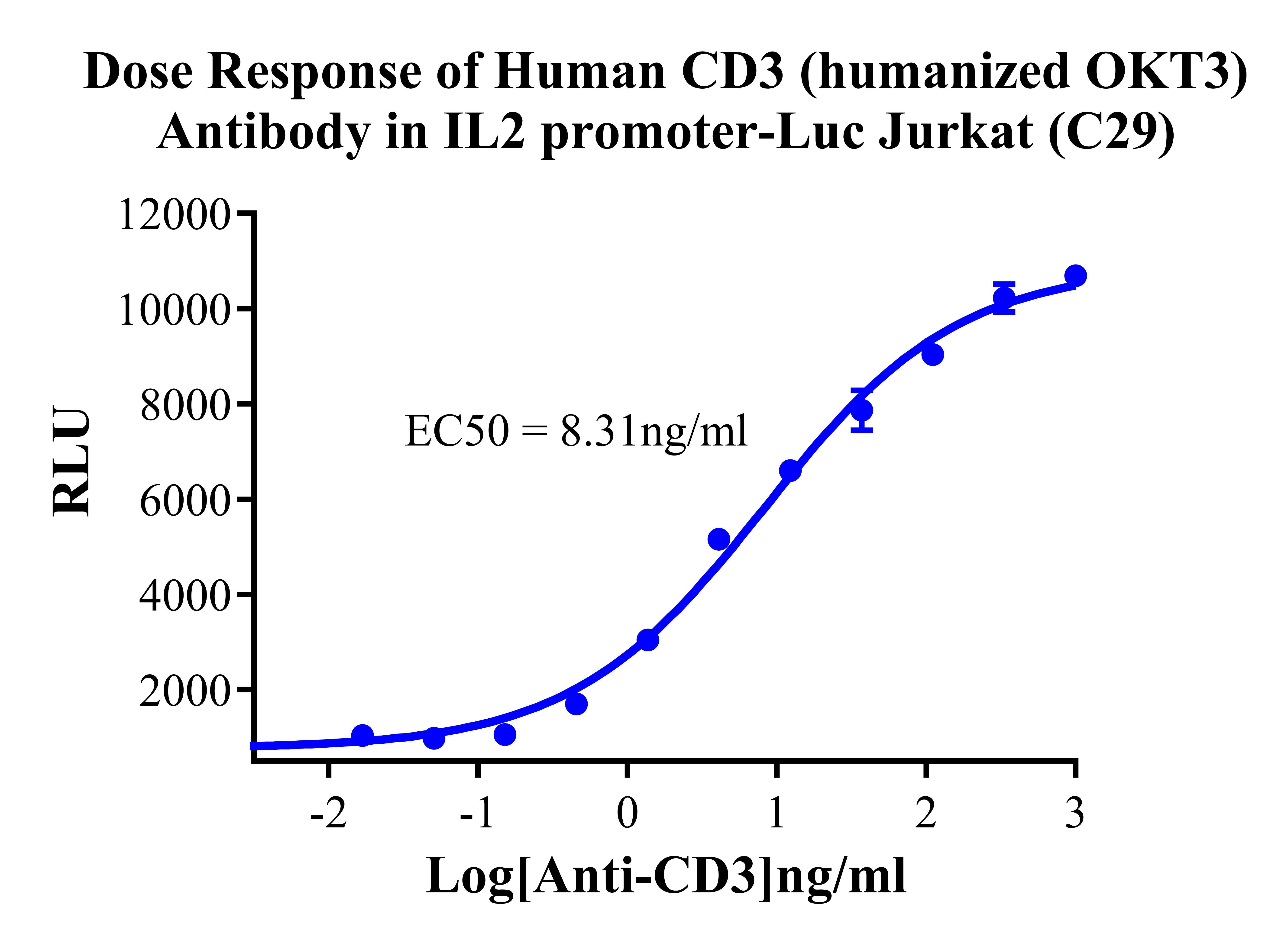 Figure 3. Dose Response of Dose Response of Human CD3(humanized OKT3) Antibody in IL2 Promoter-Luc Jurkat (C29).