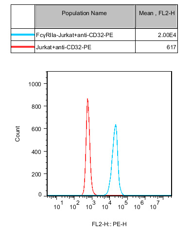 Figure 2.ADCP Bioassay Effector Cell FcγRIIa(R variant) -NFAT Jurkat 細胞流式驗證 FcγRⅡa 的表達。