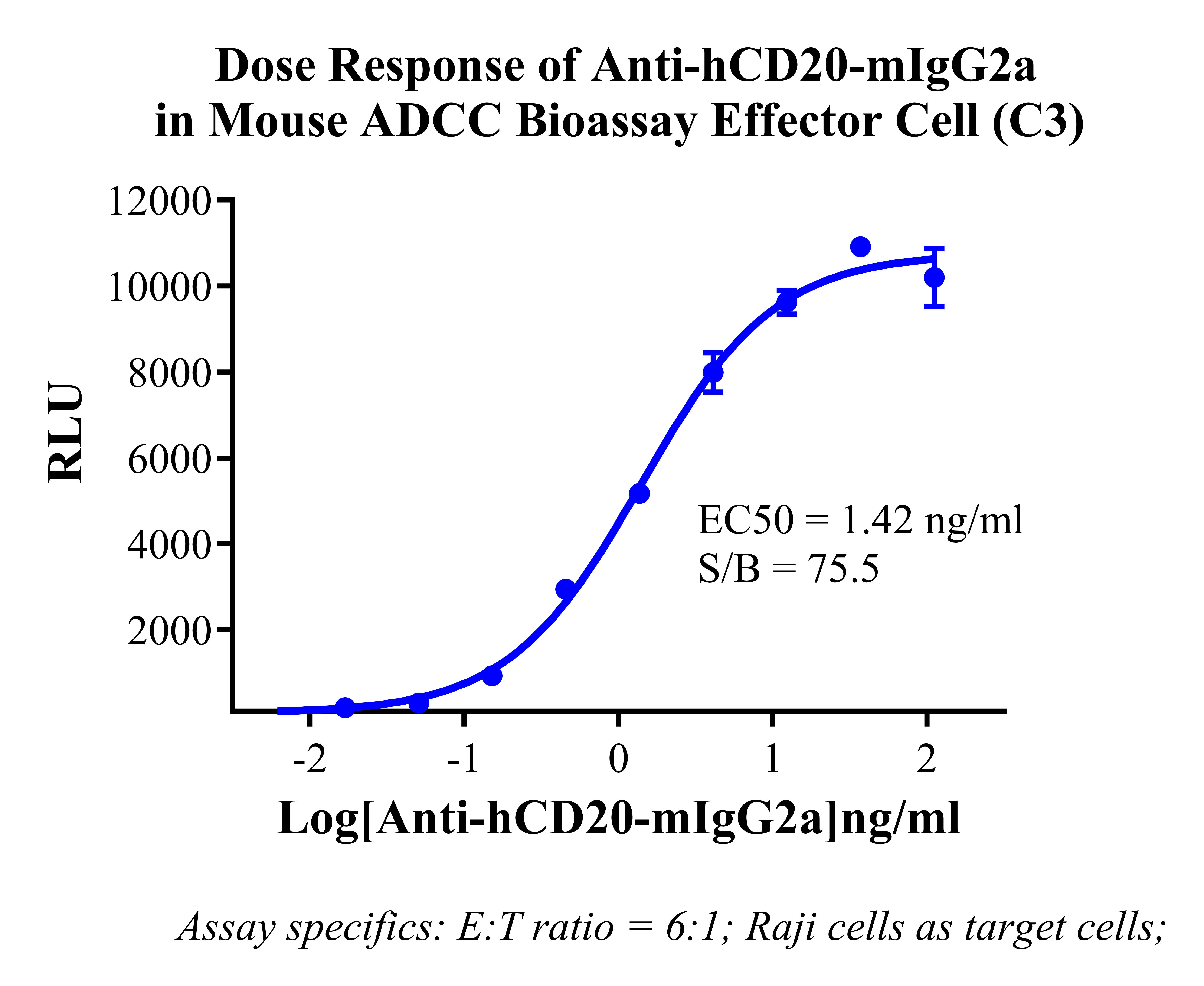 Figure 2. Dose response of Anti-hCD20-mlgG2a in Mouse ADCC Bioassay Effector Cell (C3).