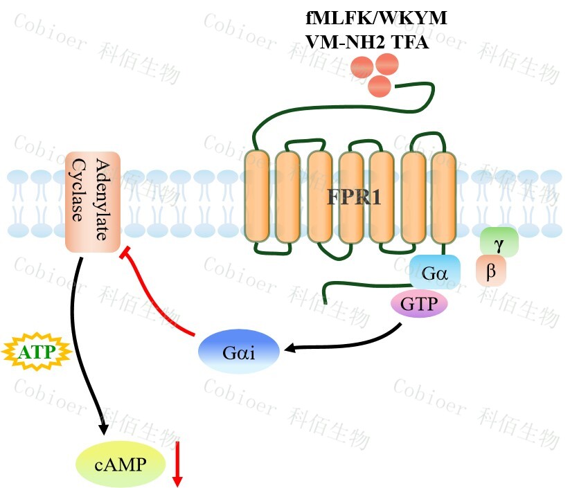 甲酰肽受體(FPR)屬于 G 蛋白偶聯(lián)受體(GPCR)家族,是趨化受體和模式識(shí)別受 體(PRR),可識(shí)別細(xì)菌和線粒體衍生的甲?;?。FPRs 家族包括三個(gè)成員(FPR1、 FPR2 和 FPR3),它們在多種組織和細(xì)胞類型中廣泛表達(dá),調(diào)節(jié)多種生物功能,如血管生 成、細(xì)胞增殖和防止細(xì)胞死亡。 |