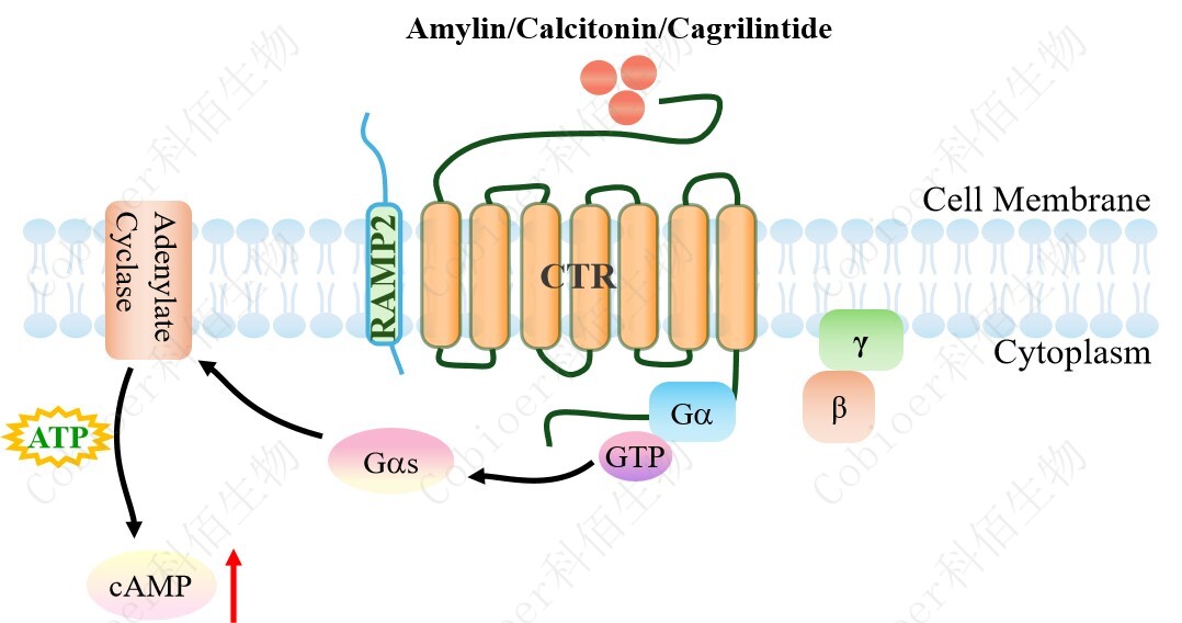cAMP 在 G 蛋白偶聯(lián)受體(GPCR)信號轉(zhuǎn)導中是一種關鍵的第二信使。當配體結(jié)合 到 GPCR,構(gòu)象發(fā)生變化,激活受體接著激活 G 蛋白,Gs 的激活導致腺苷酸環(huán)化酶調(diào)控 cAMP 的升高。