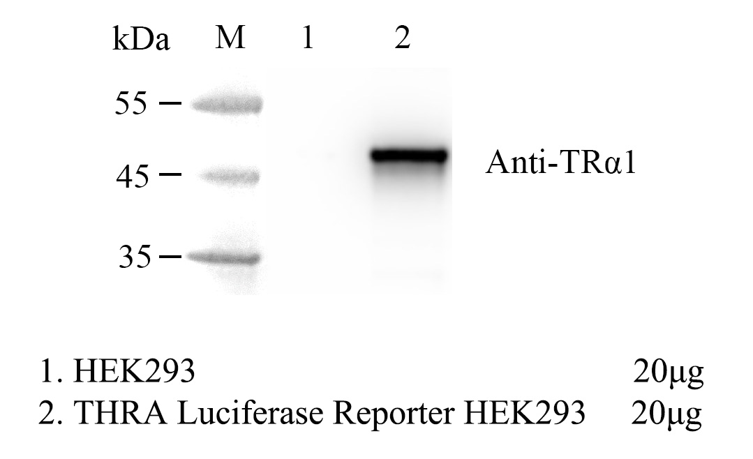 ![]() Figure 2. WB of hTHRA Luciferase Reporter HEK293. ![]() |