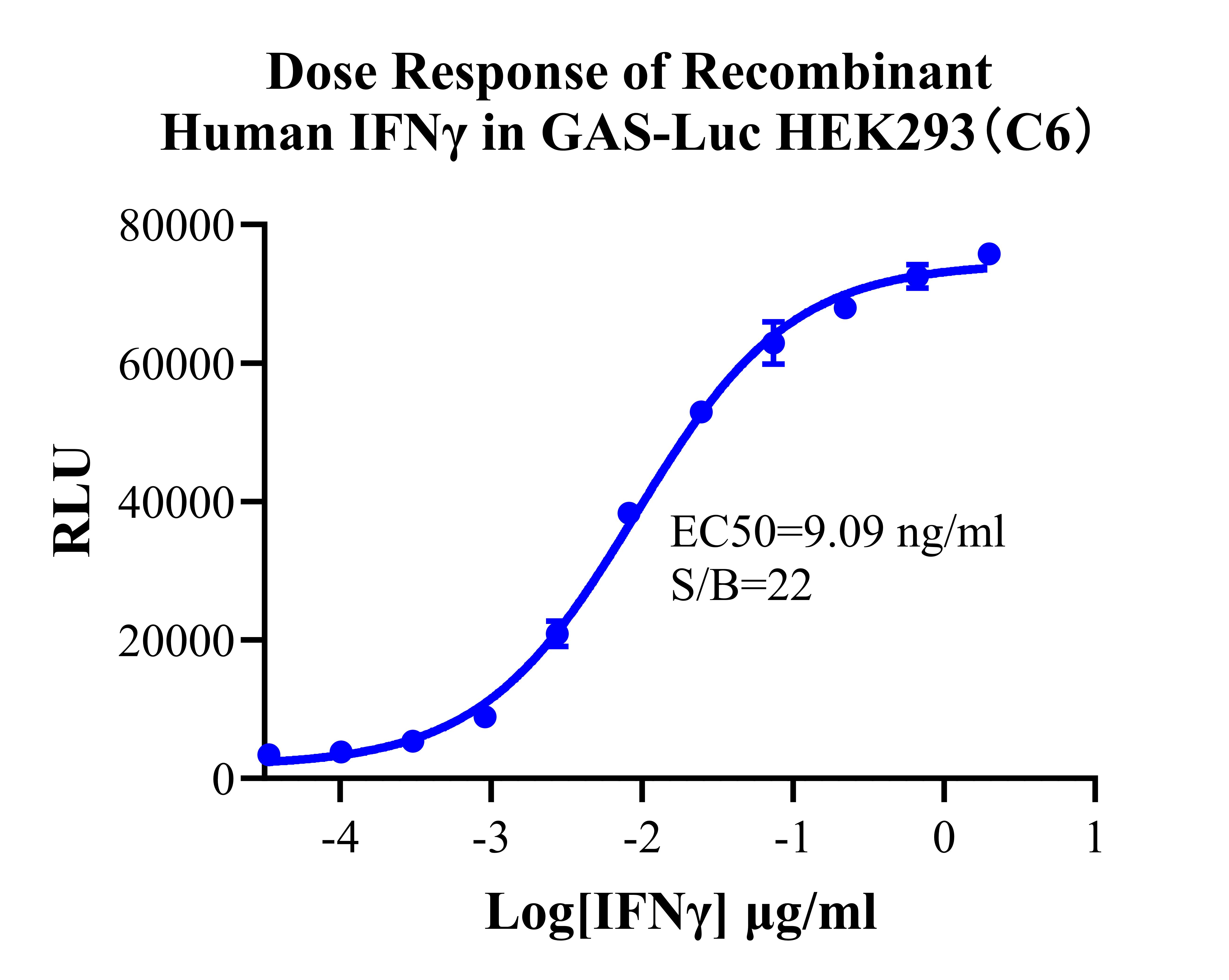 GAS-Luc HEK293 報(bào)告基因細(xì)胞,是由 GAS 調(diào)控并表達(dá) Luc 熒光素酶 報(bào)告基因的 HEK293 細(xì)胞。IFNγ與受體結(jié)合,激活 GAS 的原理見(jiàn)下圖所示。