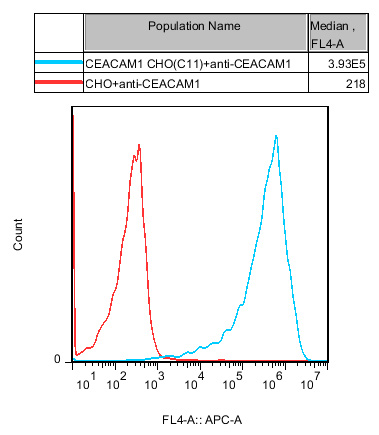 CEACAM1 CHO 細(xì) 胞, 在 CHO-K1 細(xì) 胞的 基礎(chǔ)上 ,穩(wěn) 定表 達(dá)人 CEACAM1。 | |
