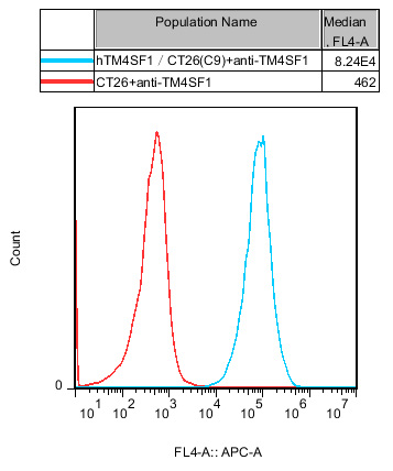 IV. Representative Data![]() Figure 1. Recombinant hTM4SF1/CT26 stably expressing hTM4SF1. |