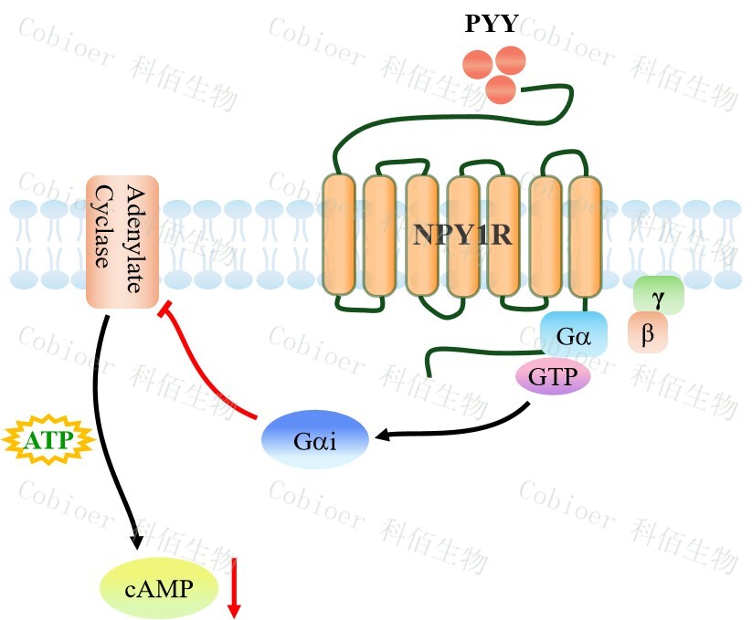 神經肽 Y(NPY)作為一種重要的神經遞質,廣泛分布于脊椎動物的中樞神經系統(tǒng)和 周圍神經系統(tǒng)。通過與不同的亞型受體結合,NPY 激活信號轉導通路,從而調節(jié)攝食 、能 量平衡、焦慮、晝夜節(jié)律和其他生理過程。NPY 受體(NPYR)屬于 G 蛋白偶聯(lián)受體家族, 目前在哺乳動物中已鑒定出 5 種受體基因亞型,即 NPY1R、NPY2R、NPY4R、NPY5R 和 NPY6R。 NPY1R 是 NPY 和 PYY 的受體,在多種生理過程中發(fā)揮作用,例如食欲、體重調節(jié)和 胰島素敏感性。 | |