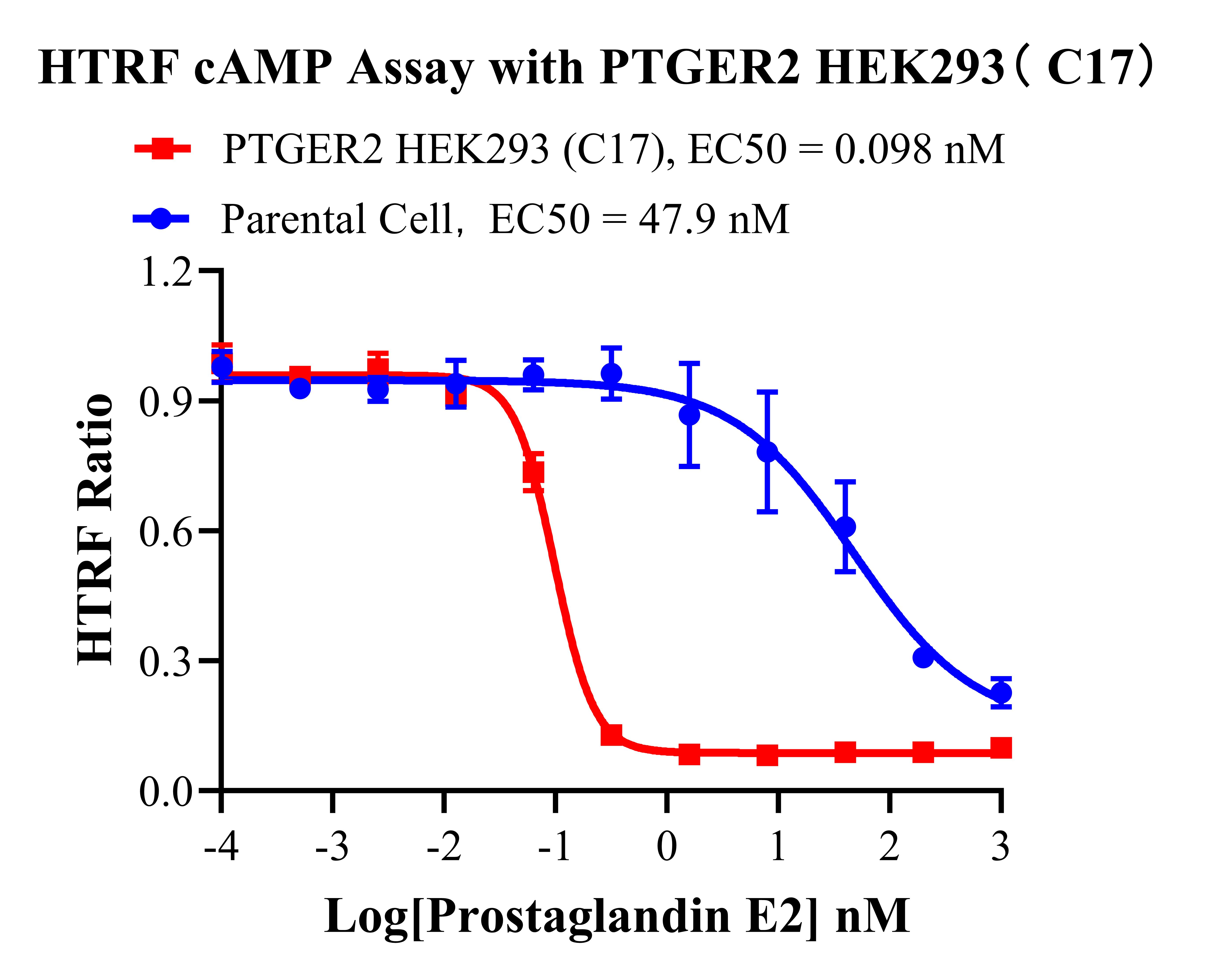 PTGER2 HEK293 細胞藥靶模型很好的模擬了體內 PTGER2 的信號轉導過程,原理見 下圖所示。